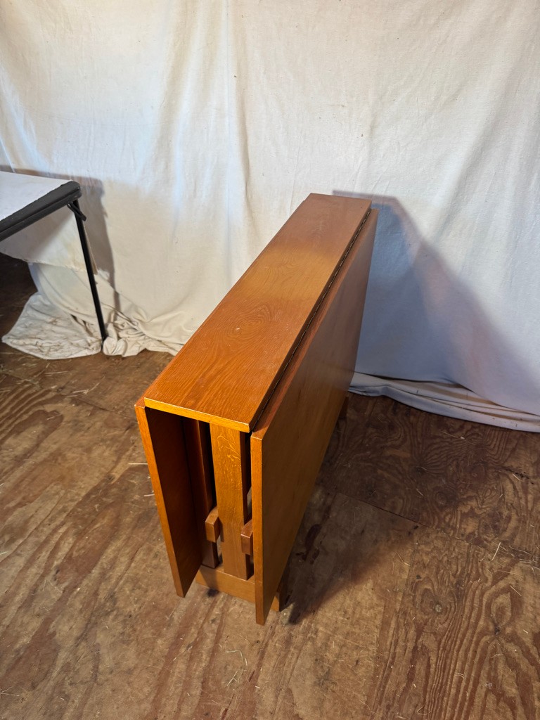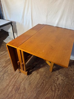 Modern wooden drop leaf table 29" tall 36" long closed 8 1/2" open 54"See photos nice long drop leafs .