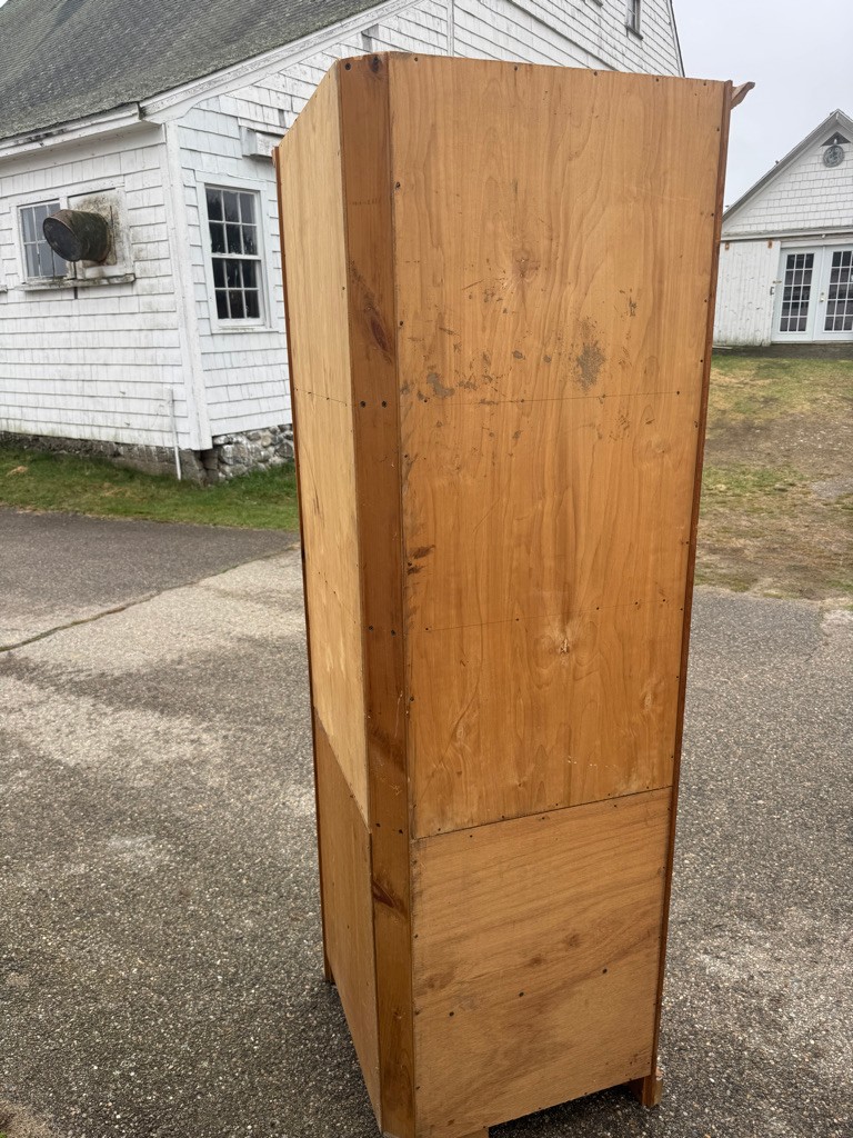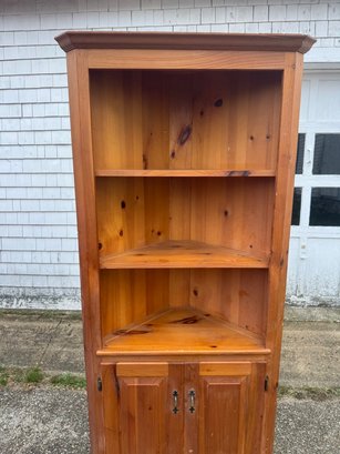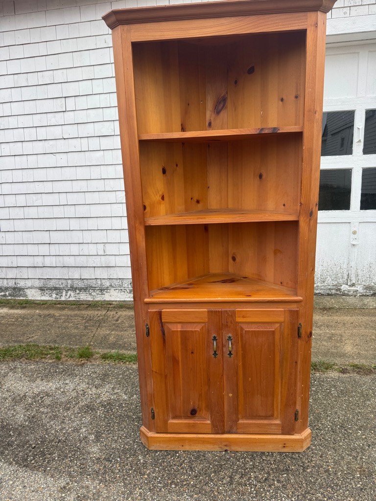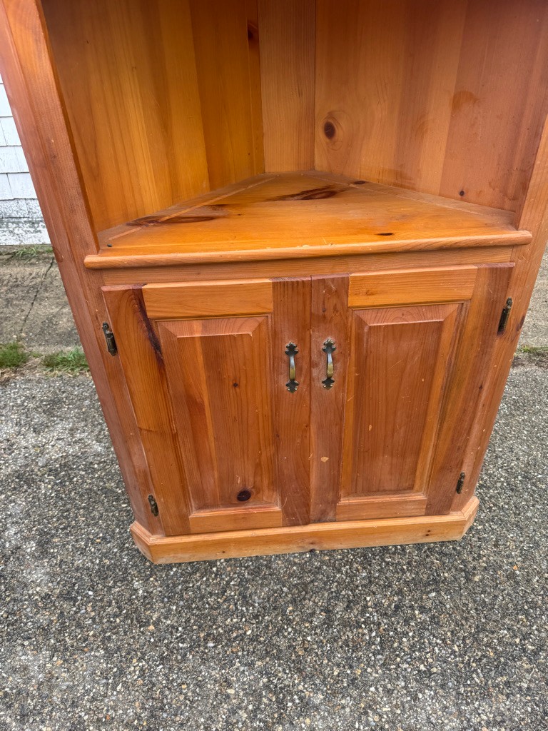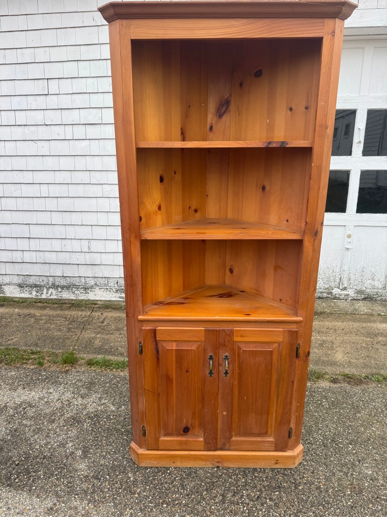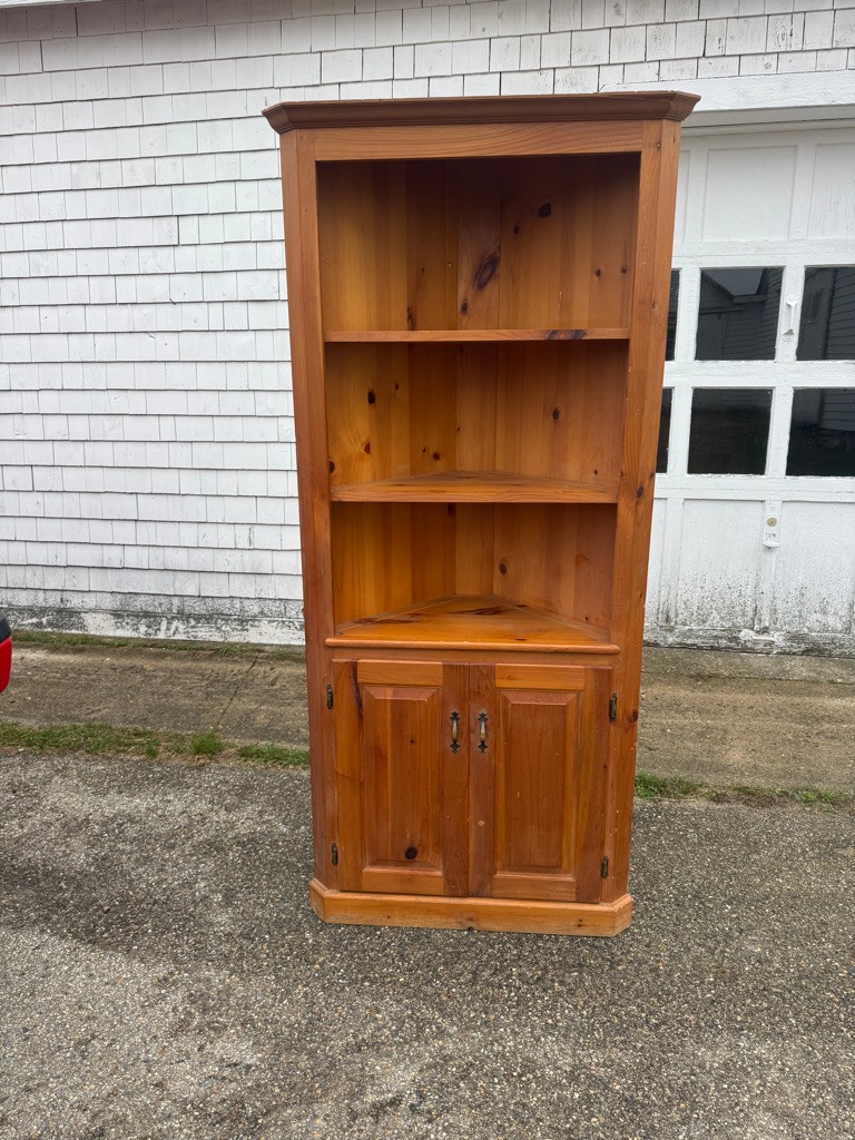Pine corner cupboard is 78" tall approximately 34 inches wide and the sides are approximately 24 inches.
