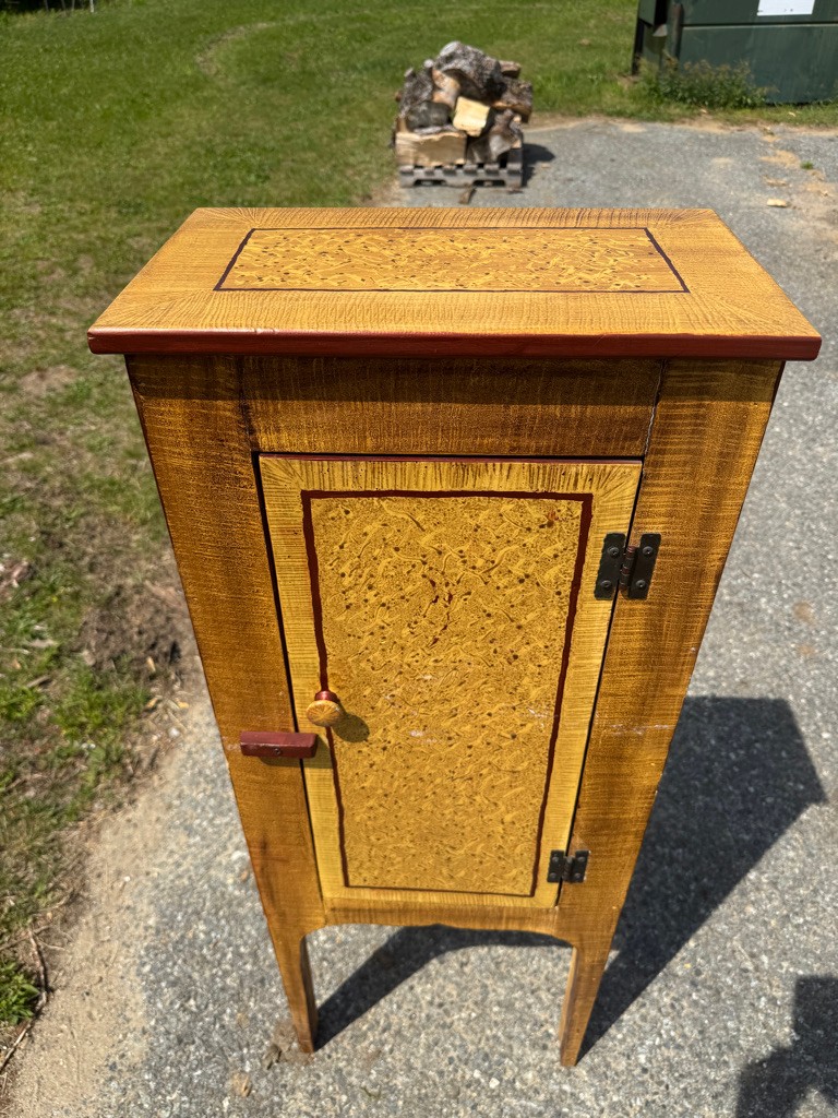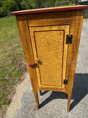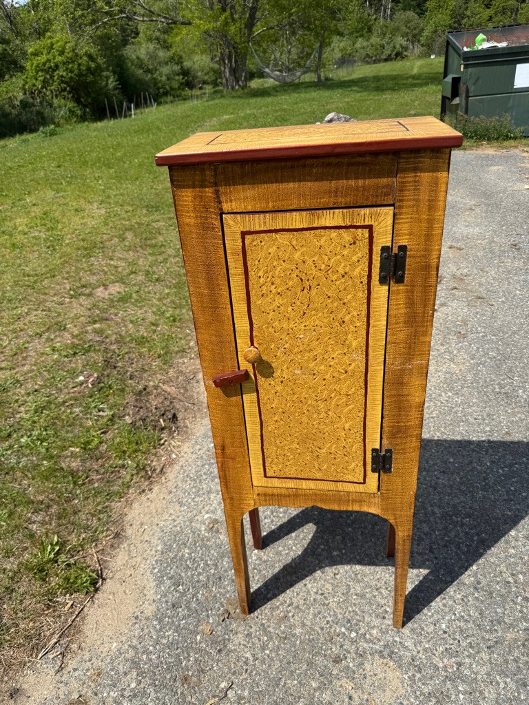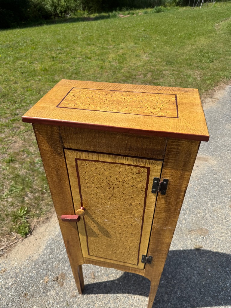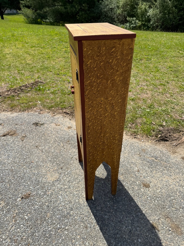 A pine contemporary painted cabinet 17 1/2 inches wide 11 inches deep and 46 inches tall cute little piece of furniture