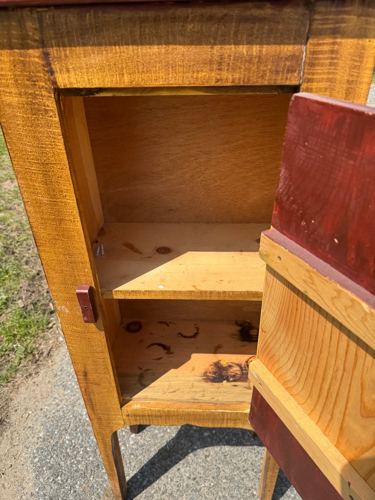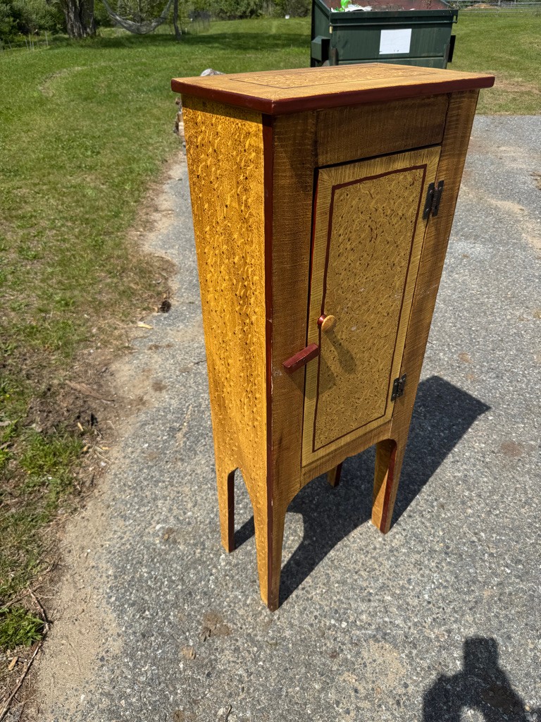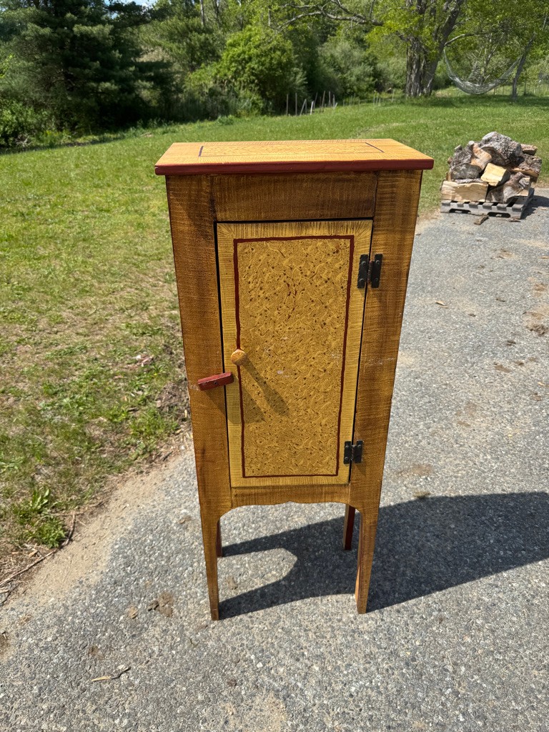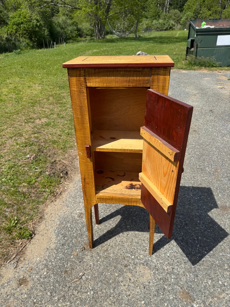 A pine contemporary painted cabinet 17 1/2 inches wide 11 inches deep and 46 inches tall cute little piece of furniture