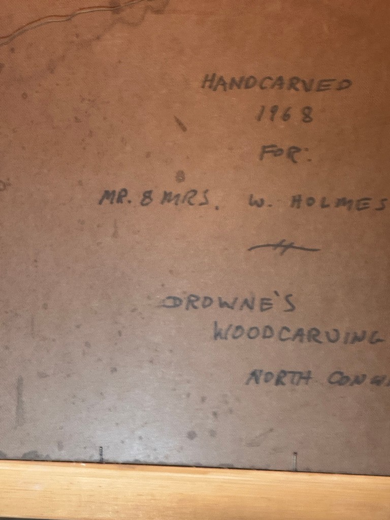 Framed wood carvings by D.W. Drowne North Conway ,New Hampshire 19 1/2" x34 1/2".