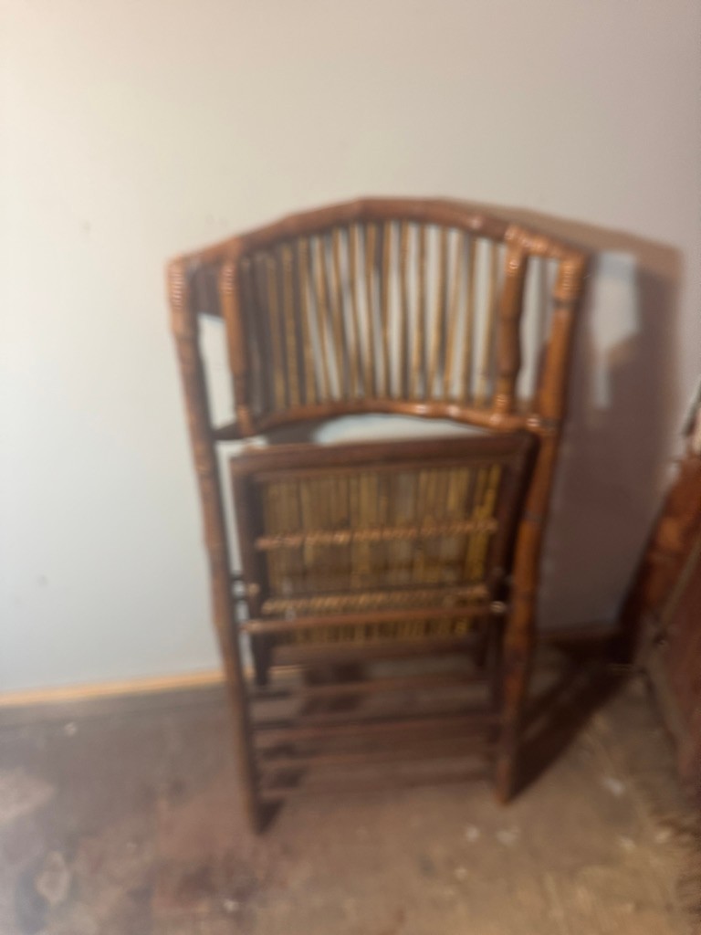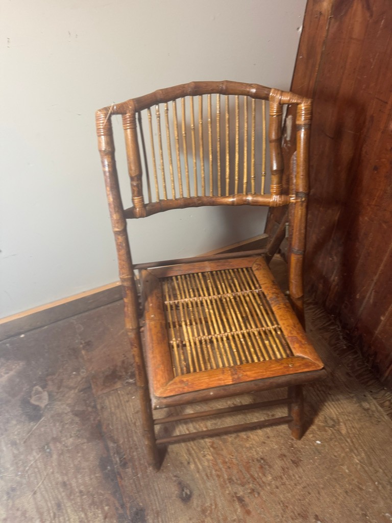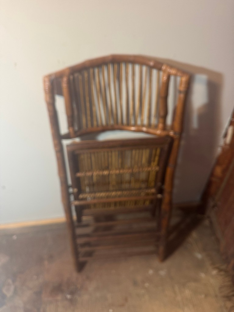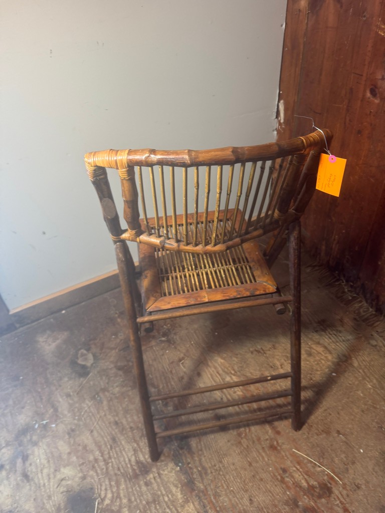 Bamboo folding chair 35" tall 18" wide and 24" deep. Nice decorative piece of furniture .