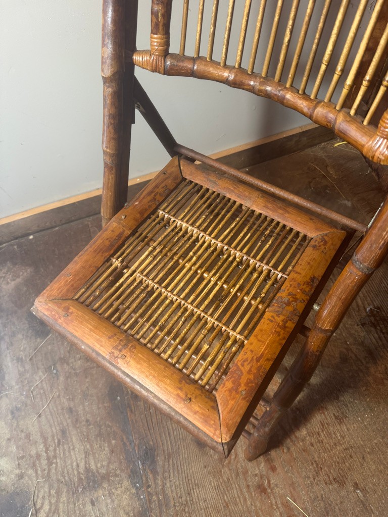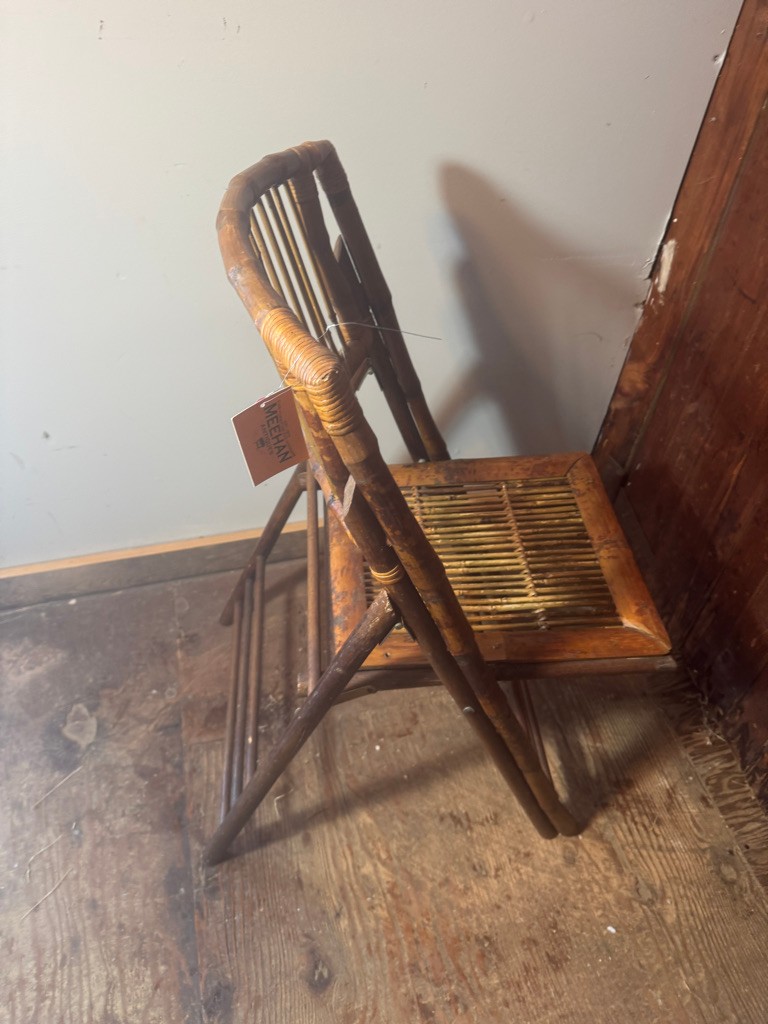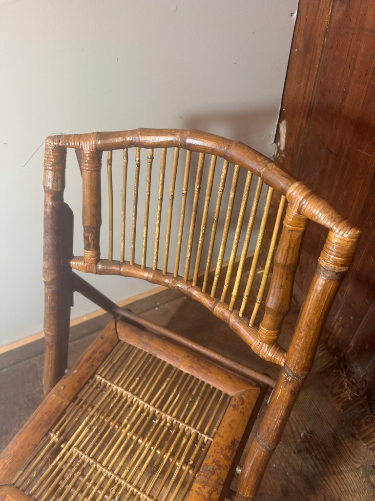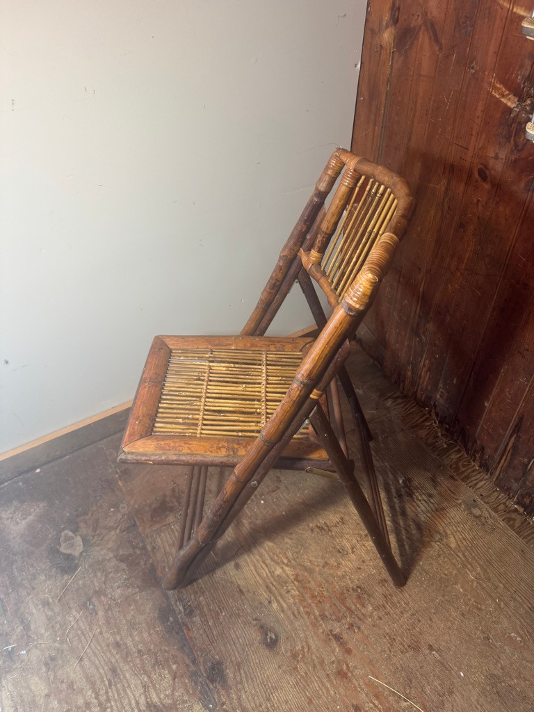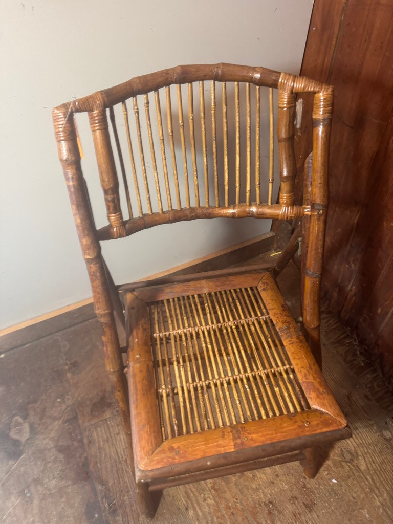 Bamboo folding chair 35" tall 18" wide and 24" deep. Nice decorative piece of furniture .