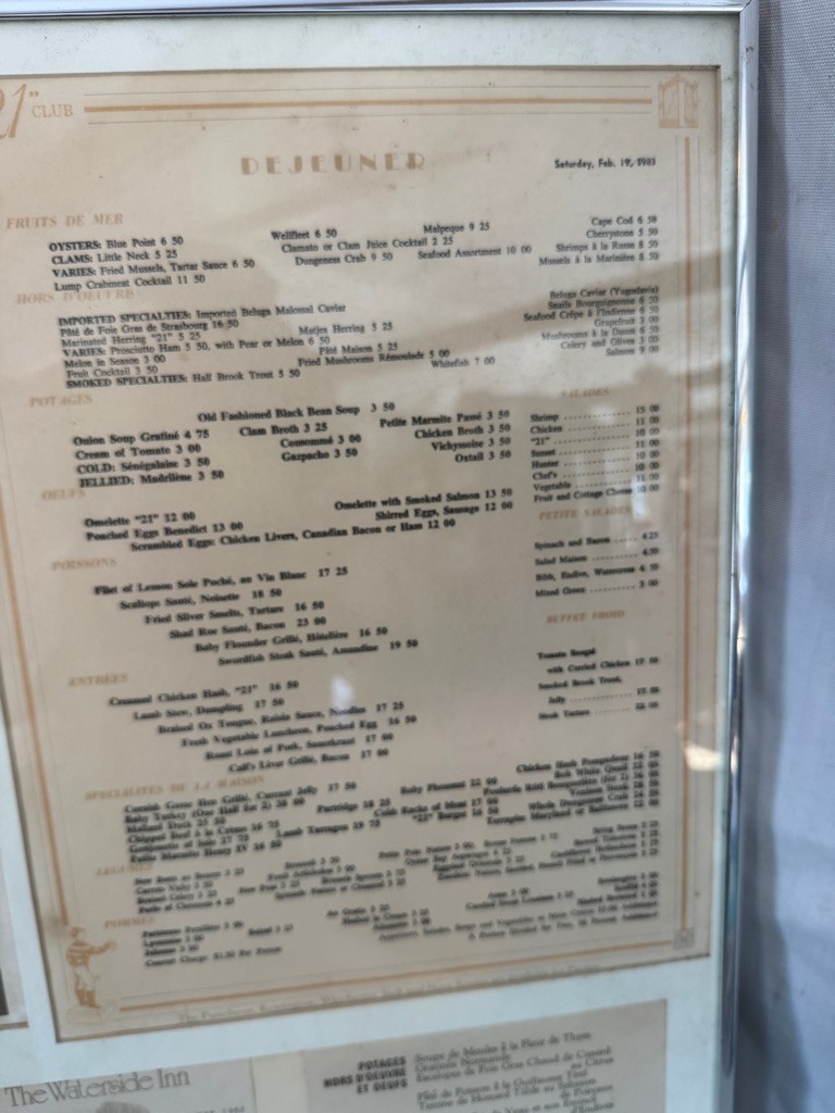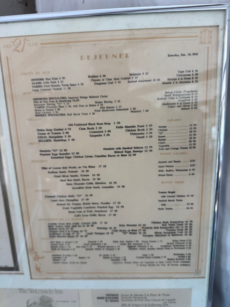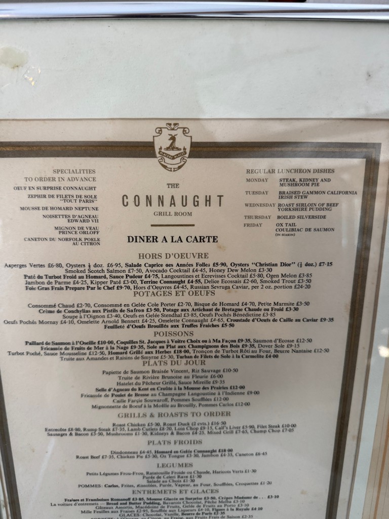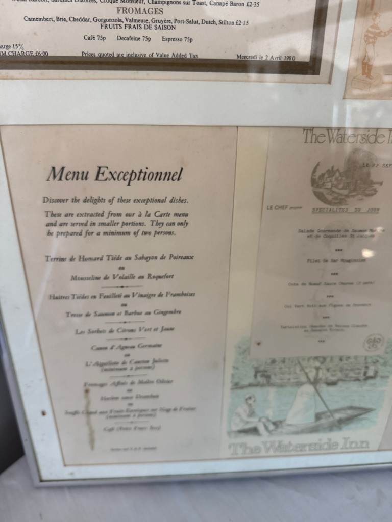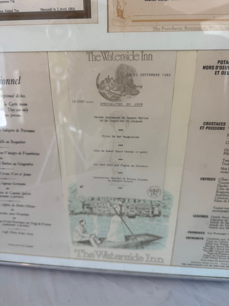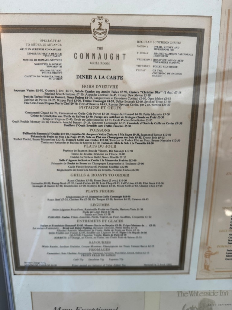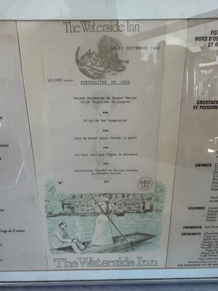 Menu in metal frame . The Waterside Inn.Connaught Grill Menu