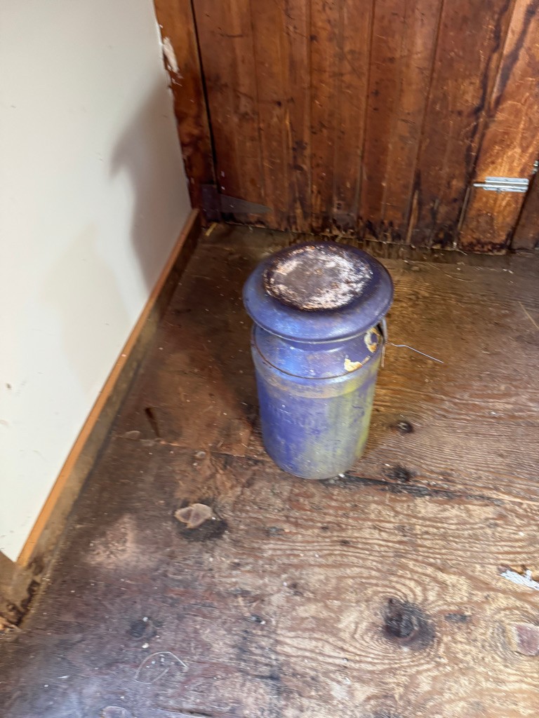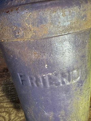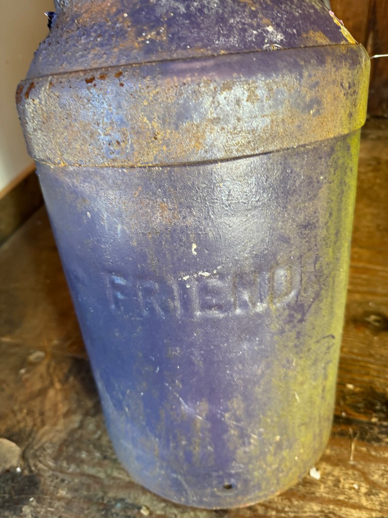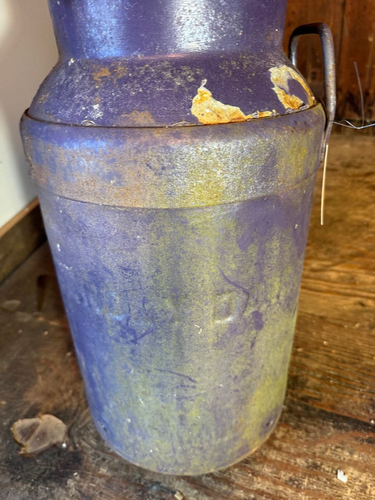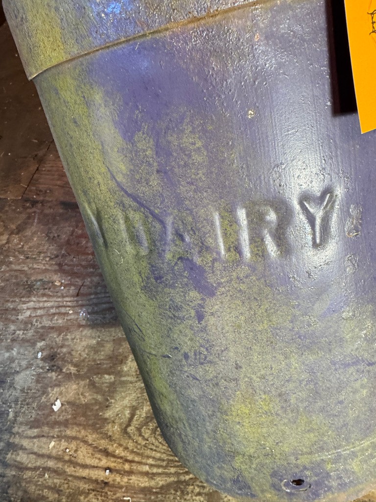 Metal milk can embossed ffriendly Dairy. Height 20" diameter 11"