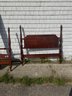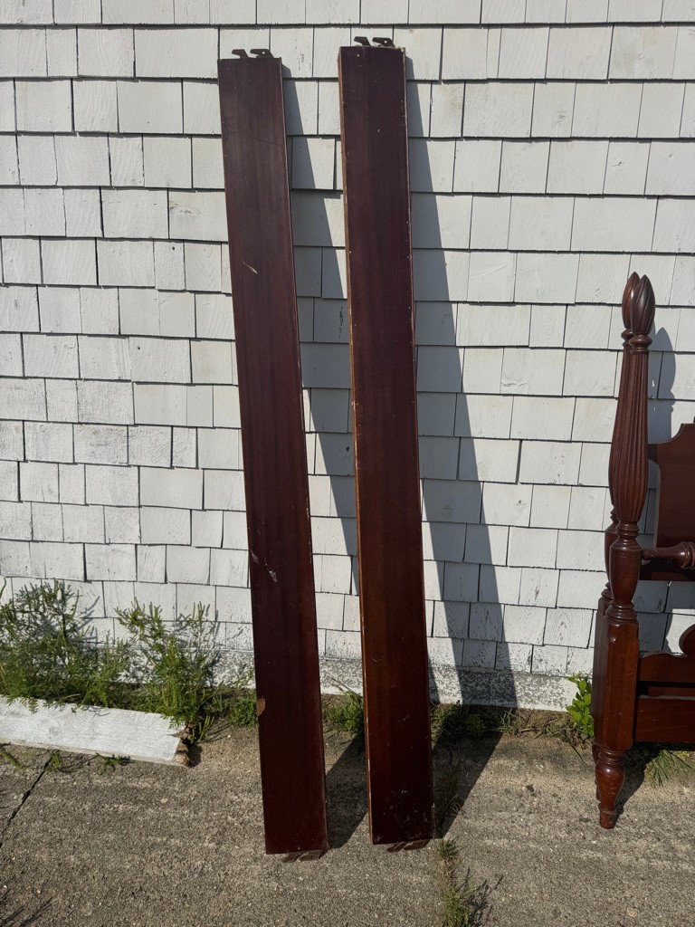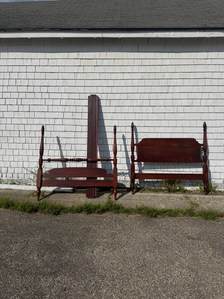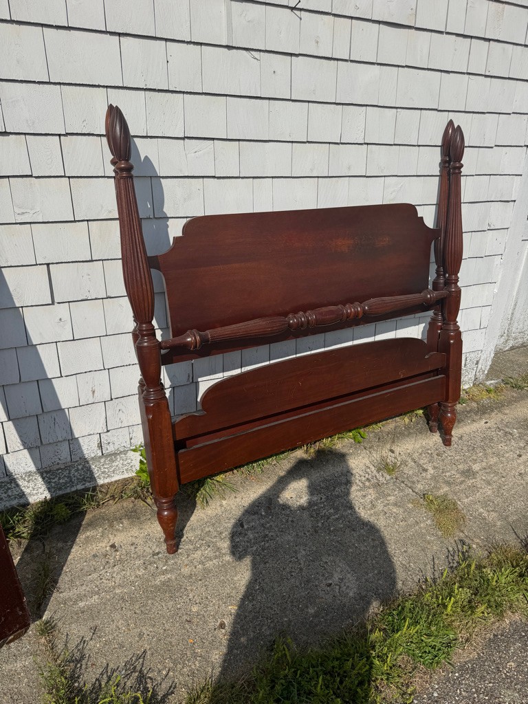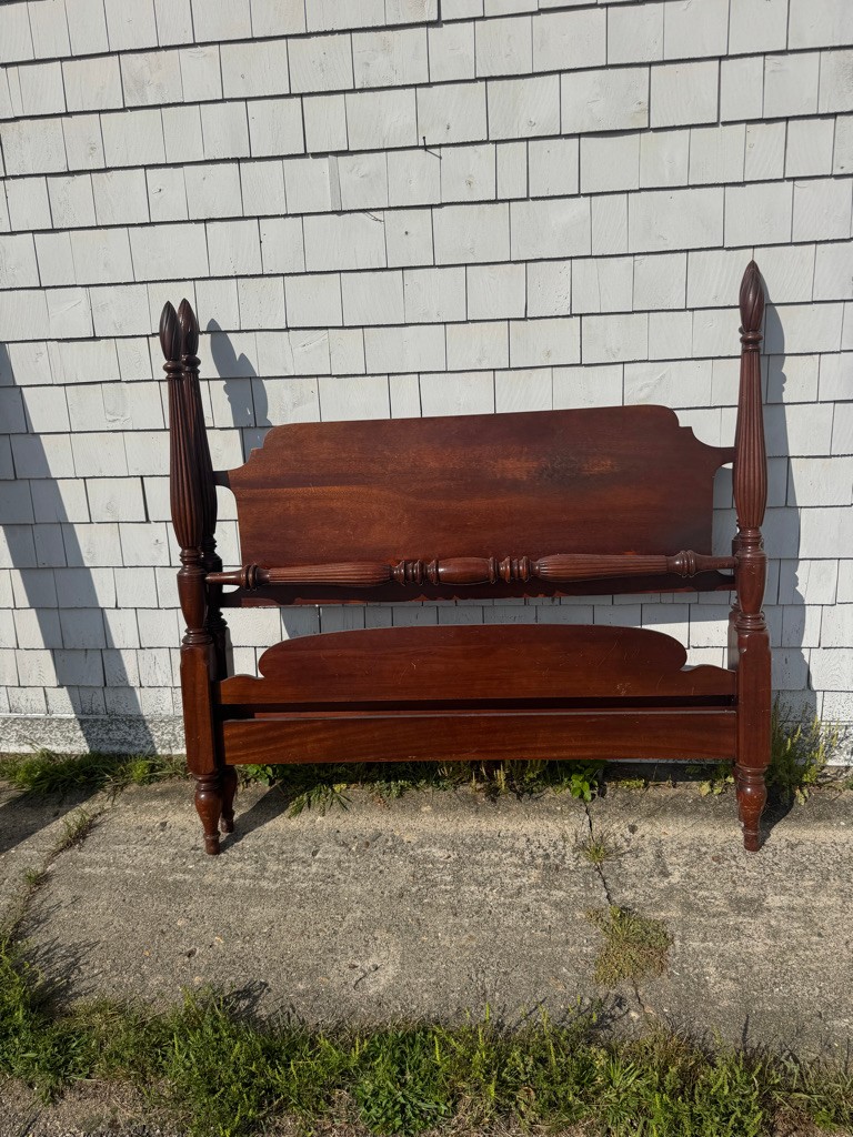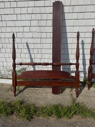 Full-size mahogany poster bed . The head and footboard are 3" deep 57" wide and 53" tall . The bed comes with wooden bed rails