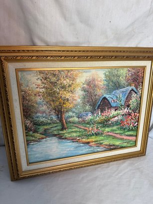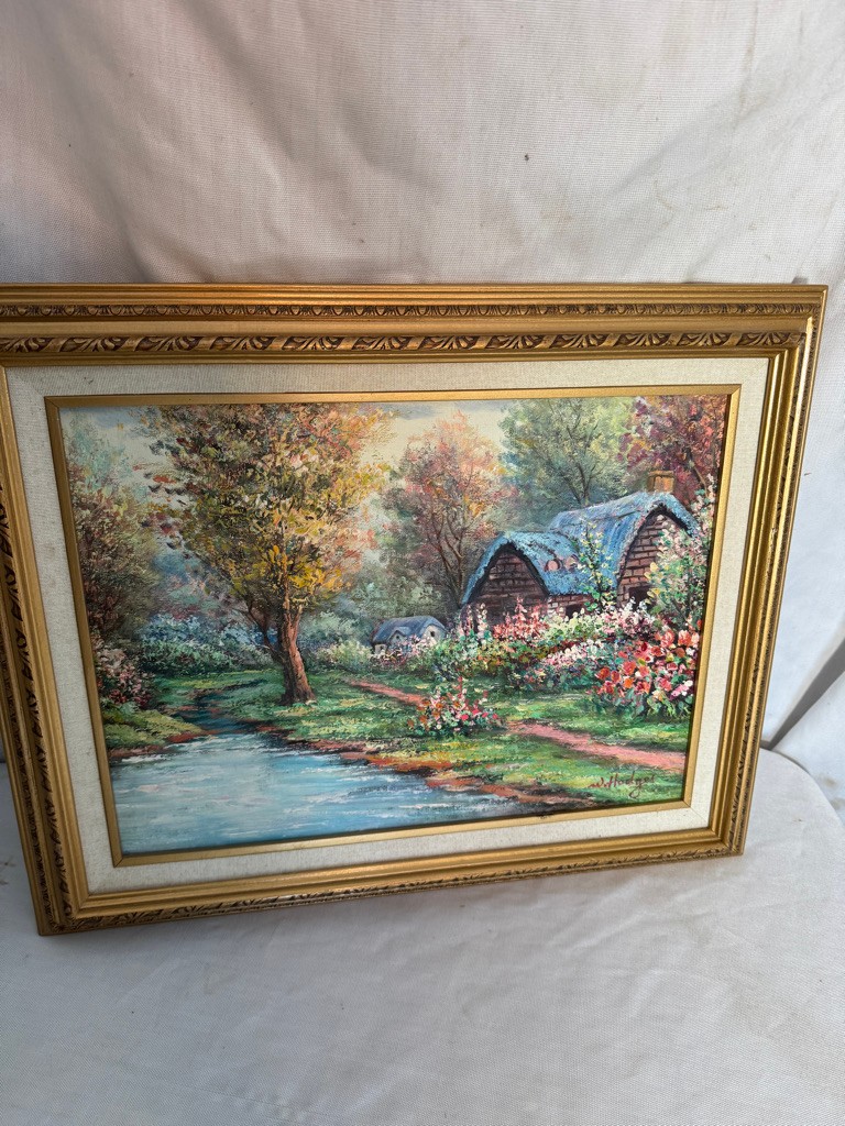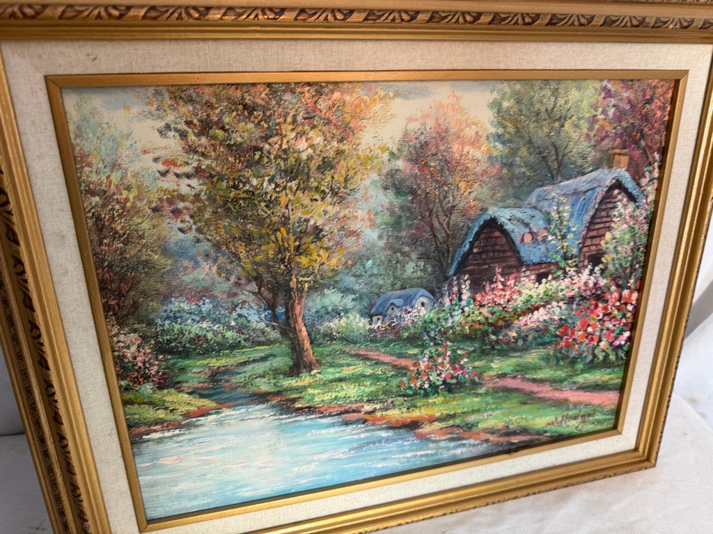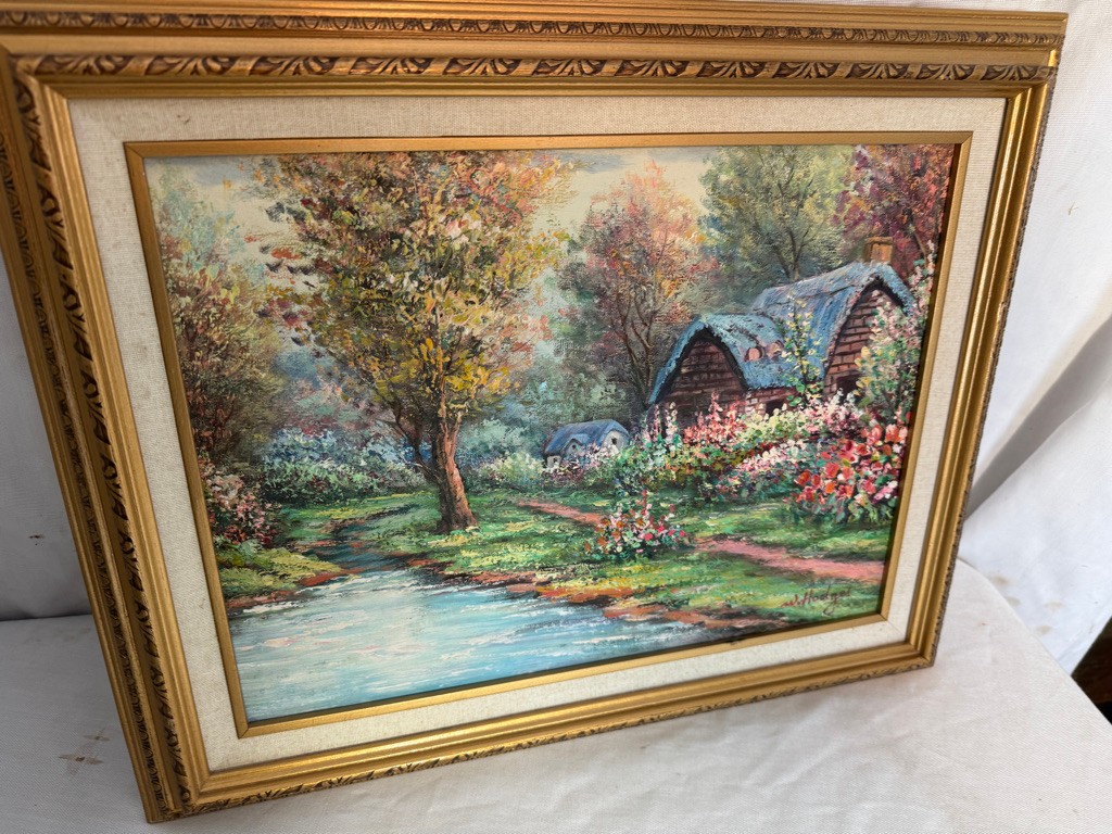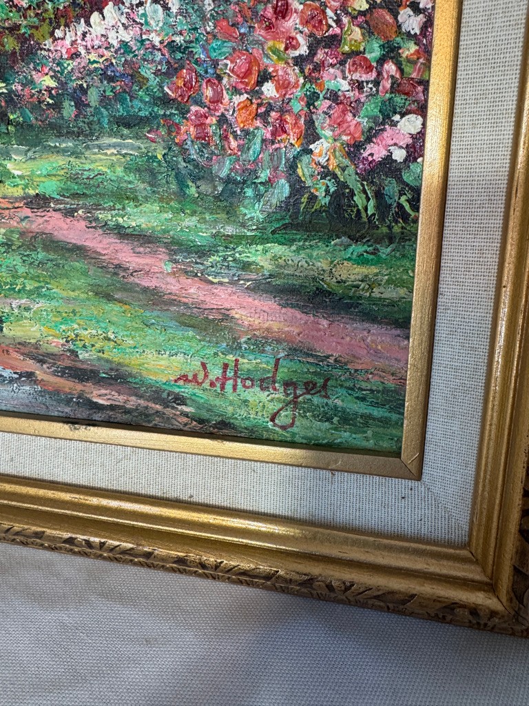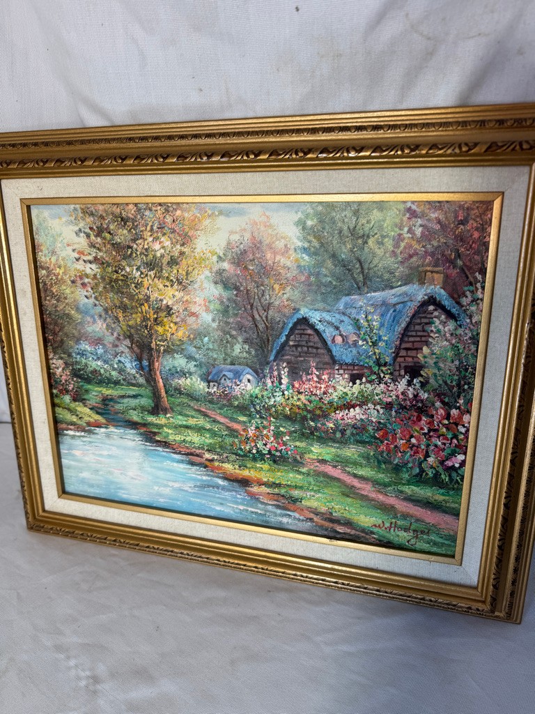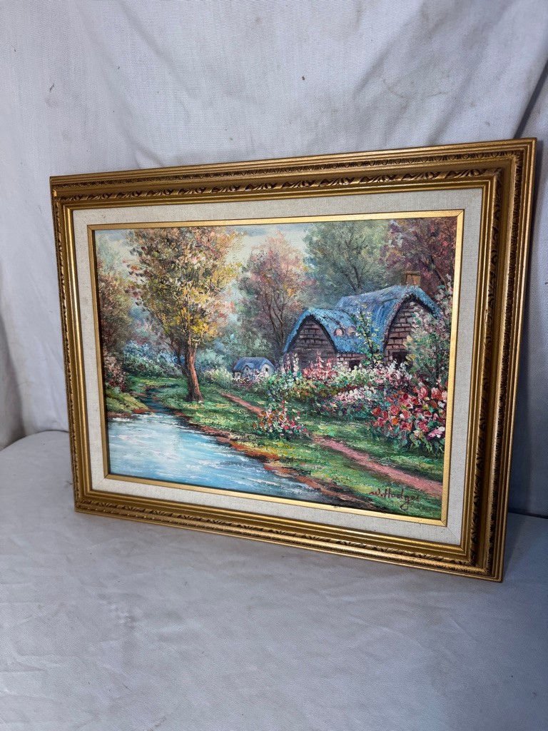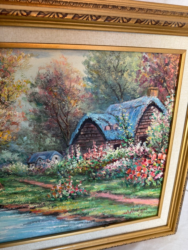 Framed o/c of house and trees 16"x20"by Hodges. Nice subkject and nice painting