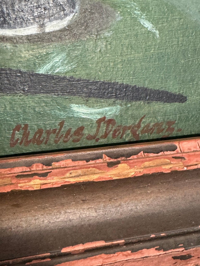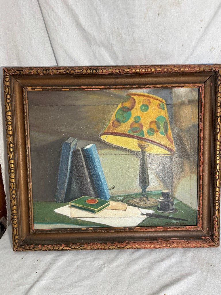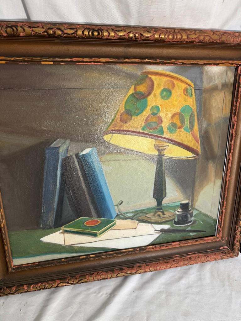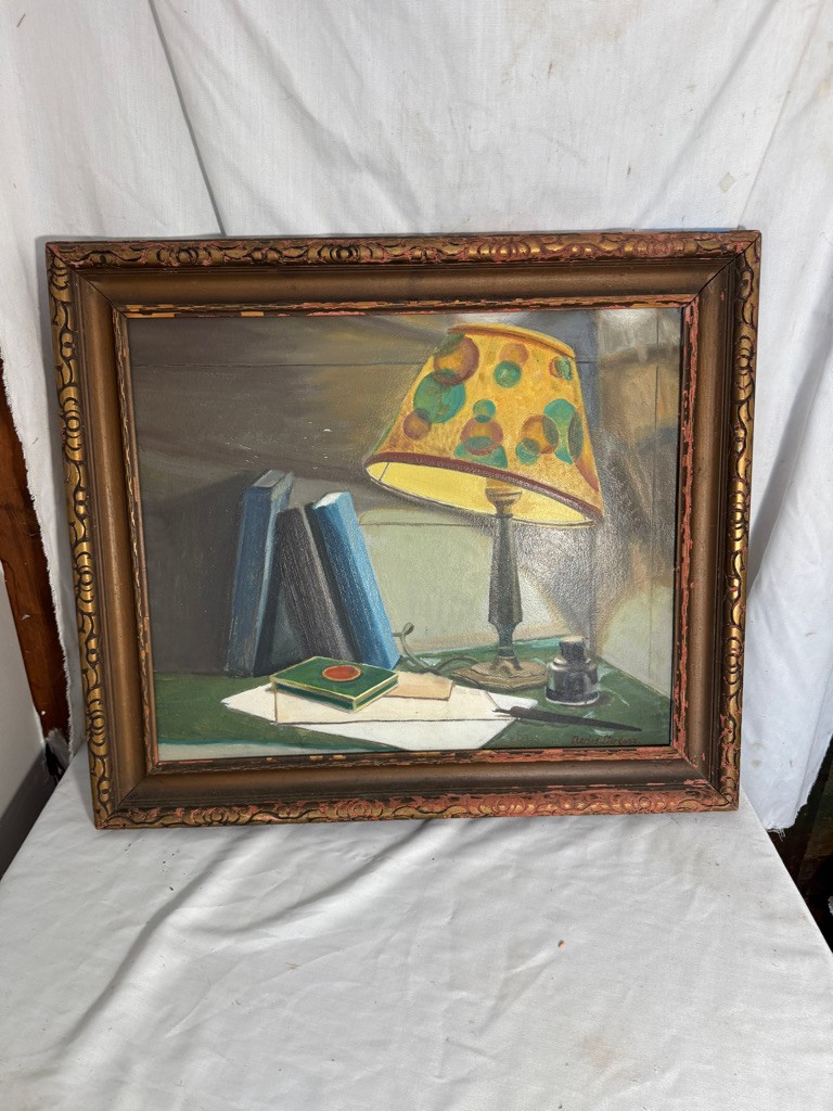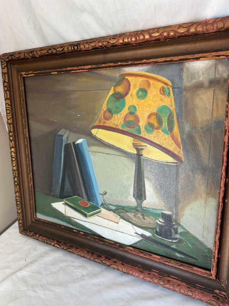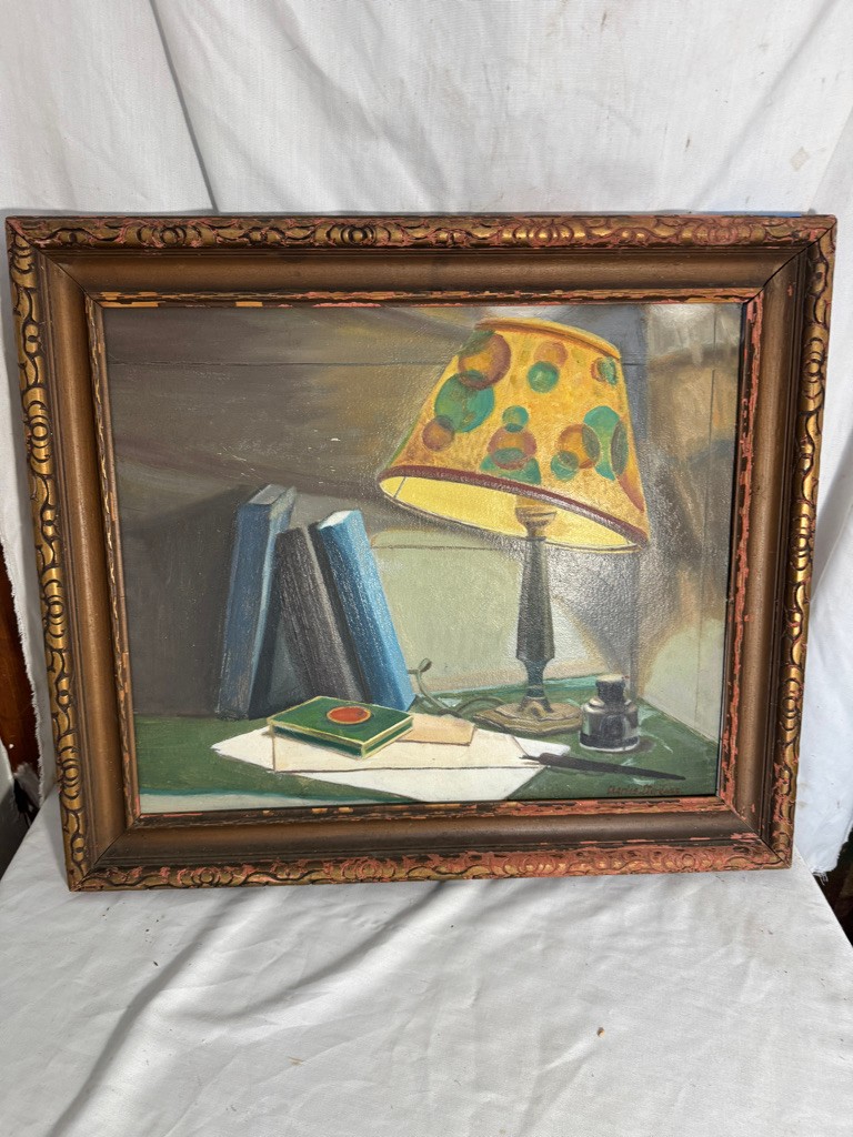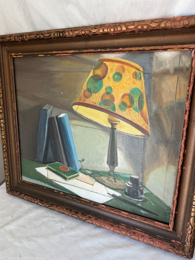 o/b signed Charles J Derganz painting of Lucky Strike and Lamp