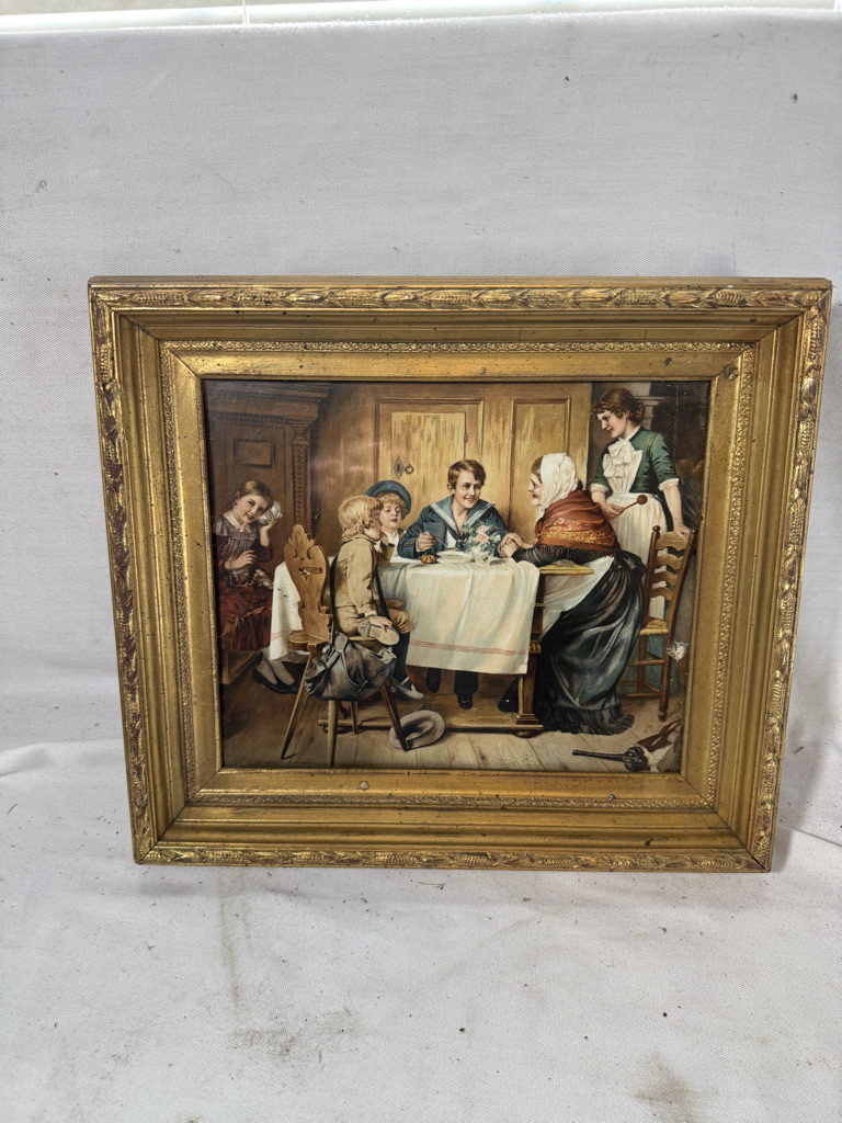gold colored frame with picture of people