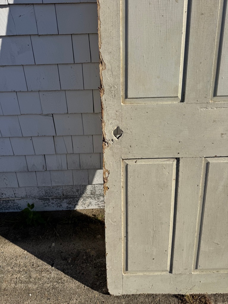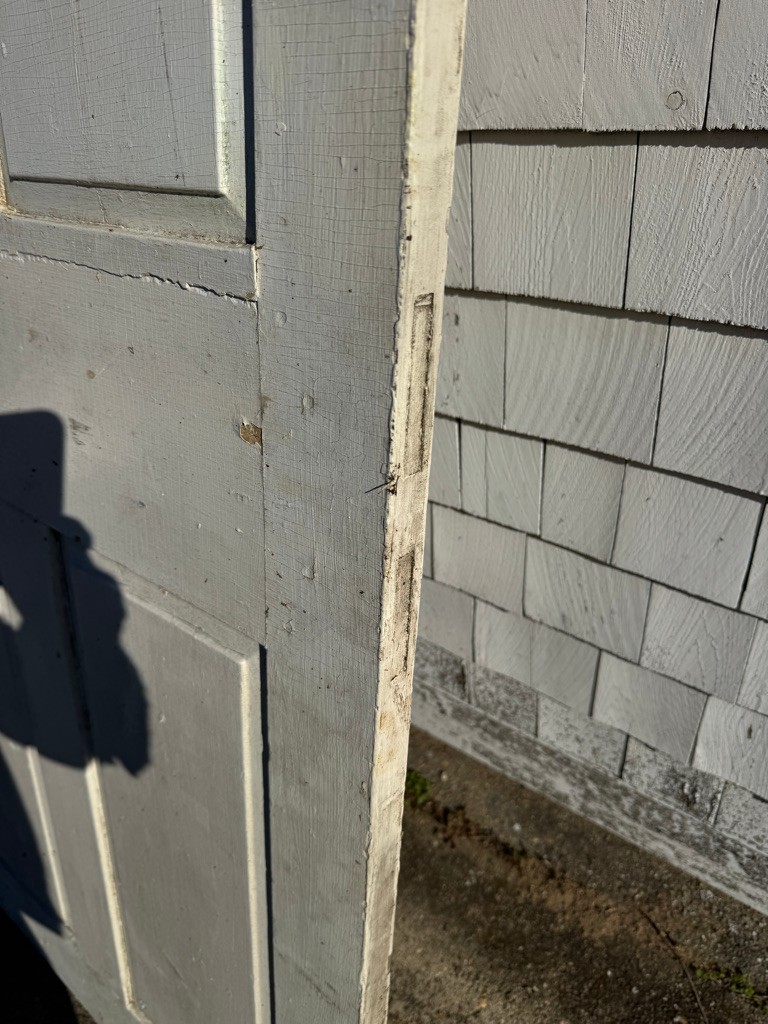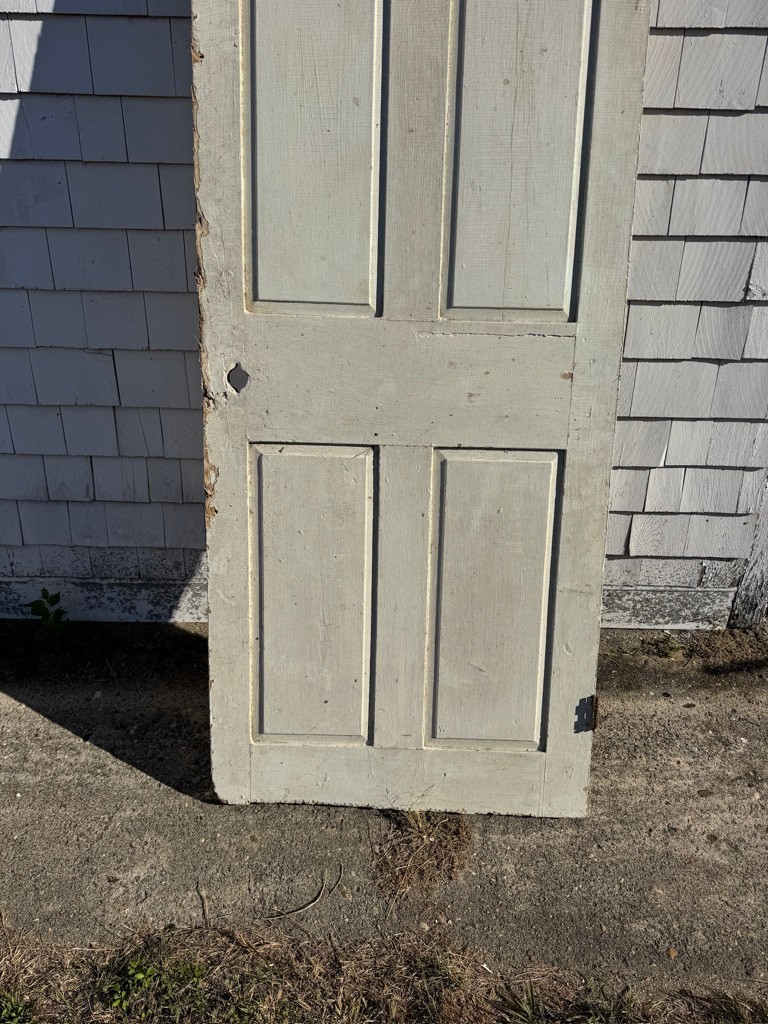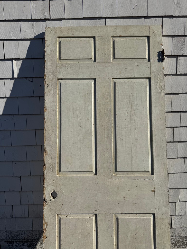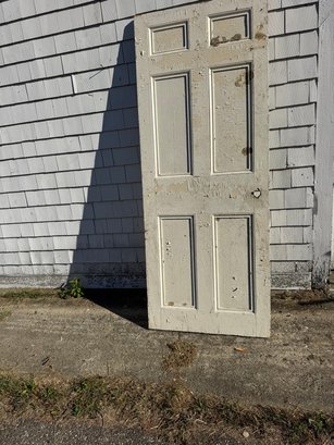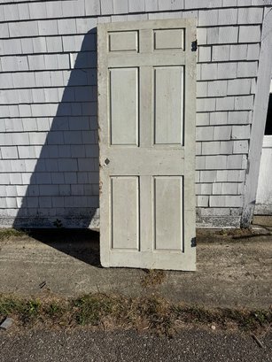 Old wooden door six raised panels 77 1/2 inches tall 30 1/2 inches wide depth of an inch and a quarter