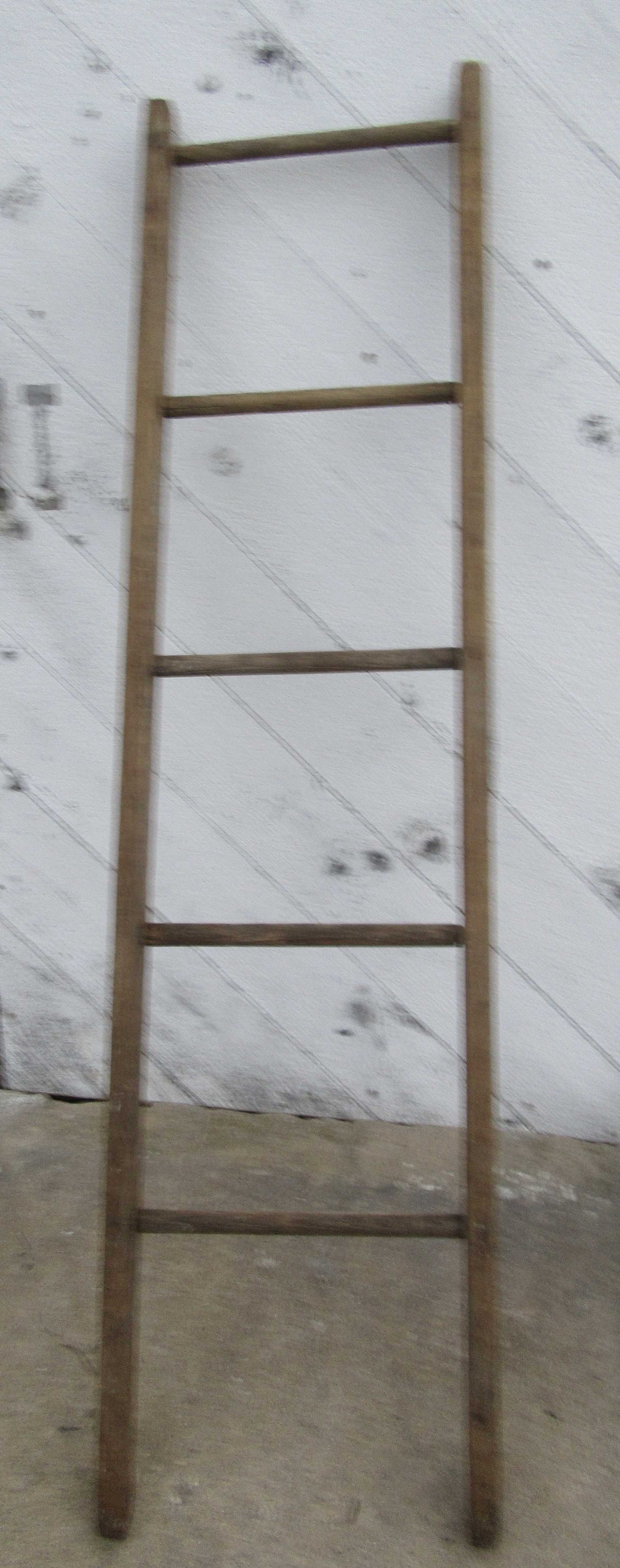 Rickety old ladder .Decorators are painting them and using for blanket or towel ladders
