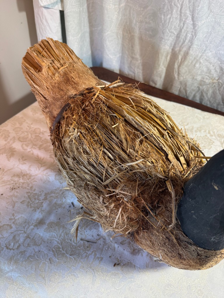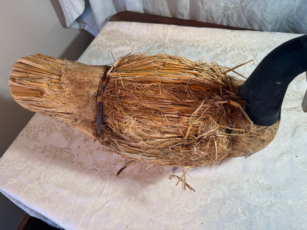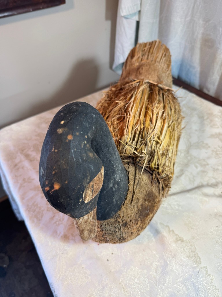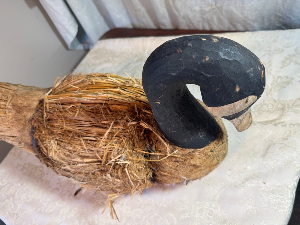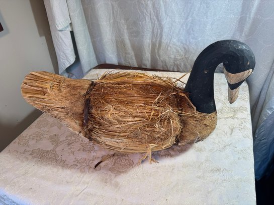 The Primitive Goose isconstructed of multiple material , wood ,metal etc. the goose is 24 inches long 10 inches deep and 14 inches tall, Very unusual goose decoy