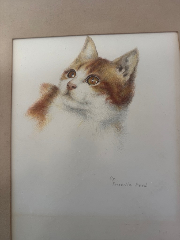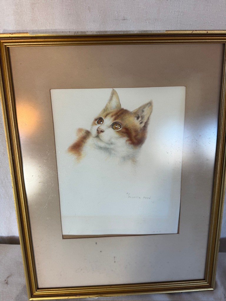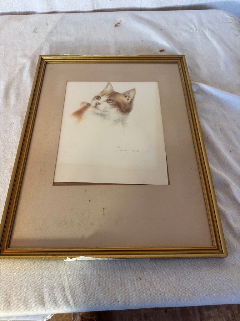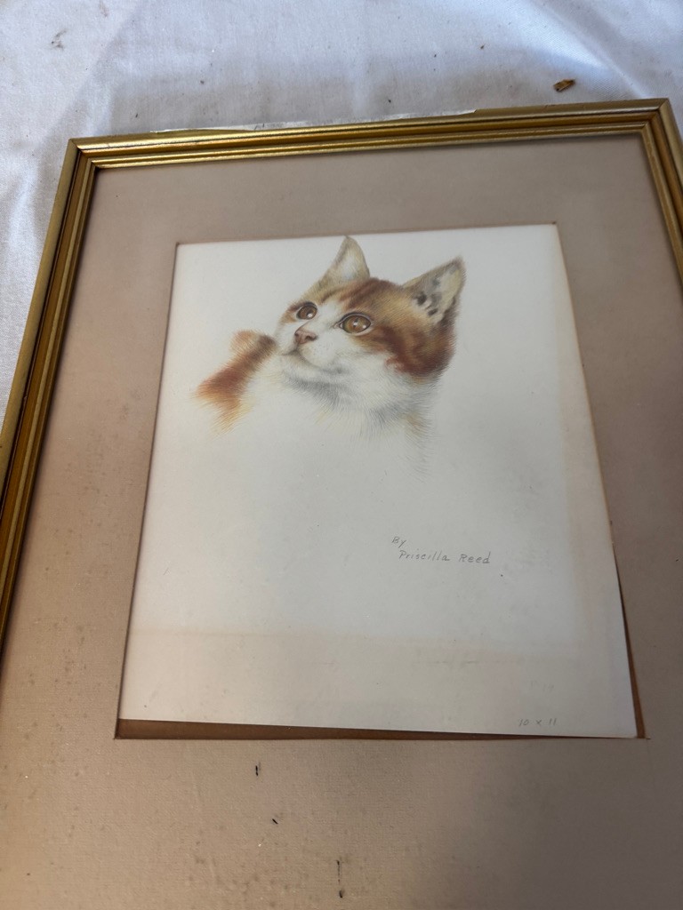 Framed Cat by Priscilla Reed 12" x 9 3/4"