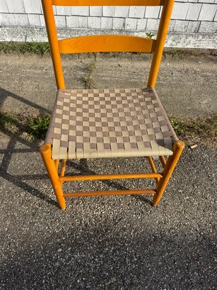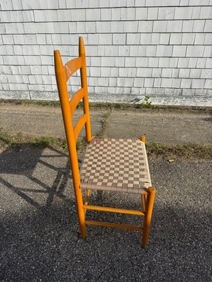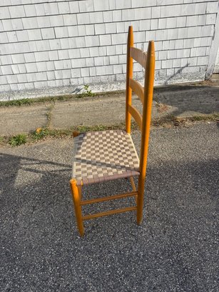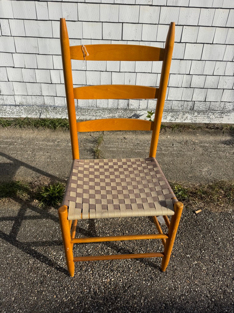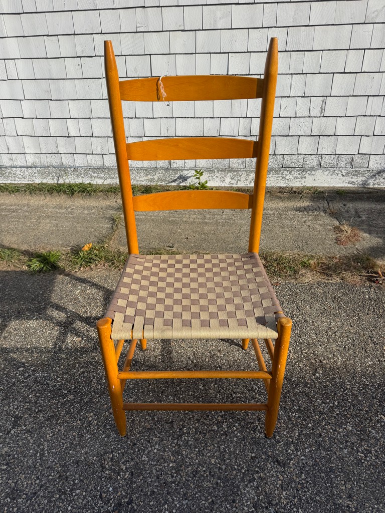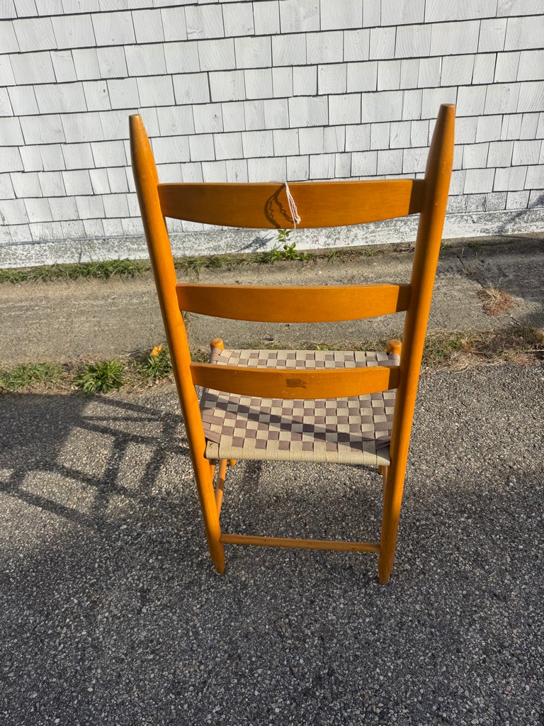 Shaker style ladder back chair with webbed seat. The chair is 43 inches tall 19 1/2 inches wide and 16 inches deep