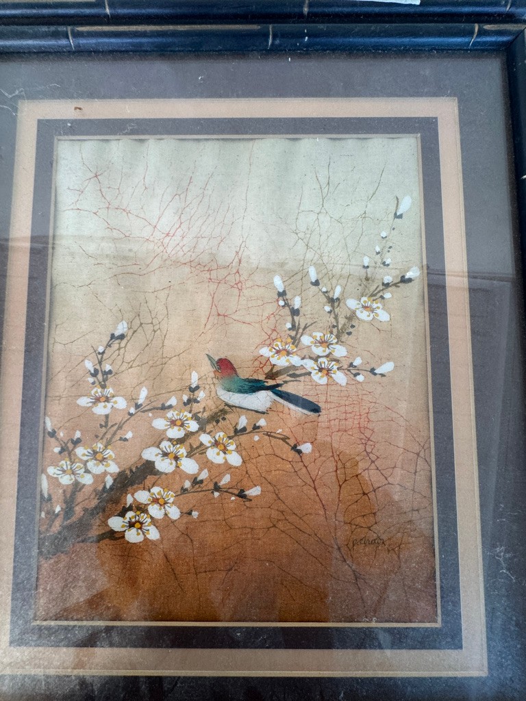 signed o/p of a bird on branch 11 3/4 x 9 1/4" Signature looks like Pectratr make your own decision