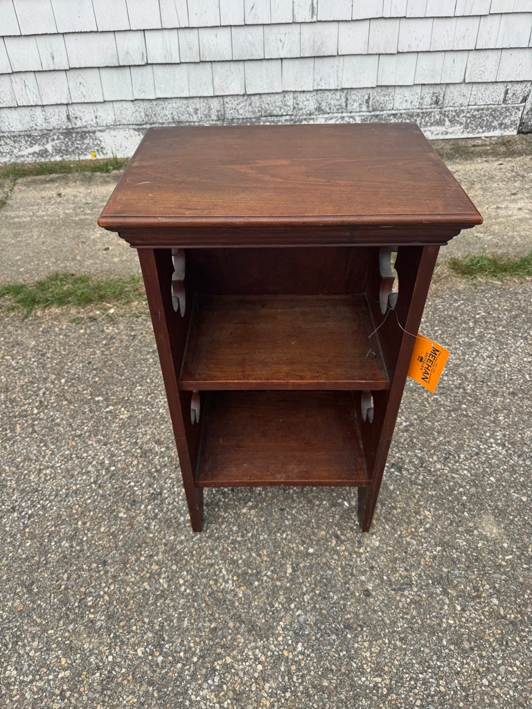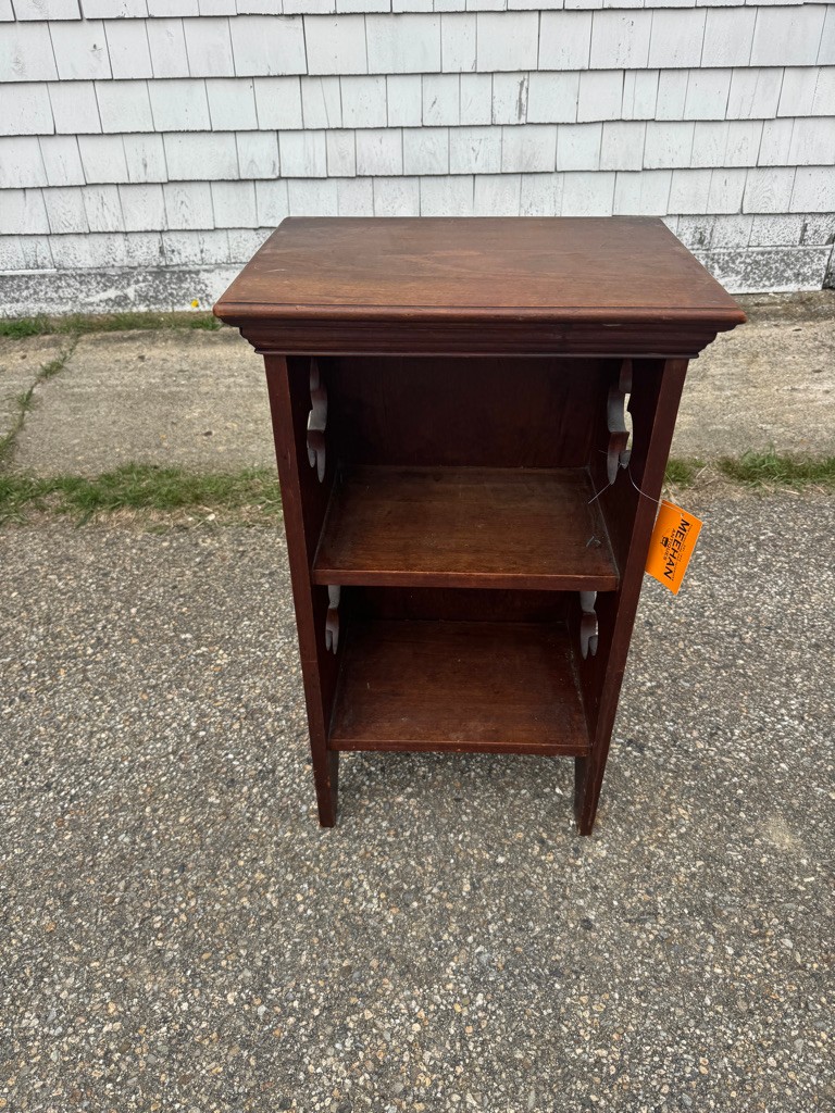 Cute small open bookcase with cut out decoration on sides 27 inches tall 16 inches wide and 12 inches deep
