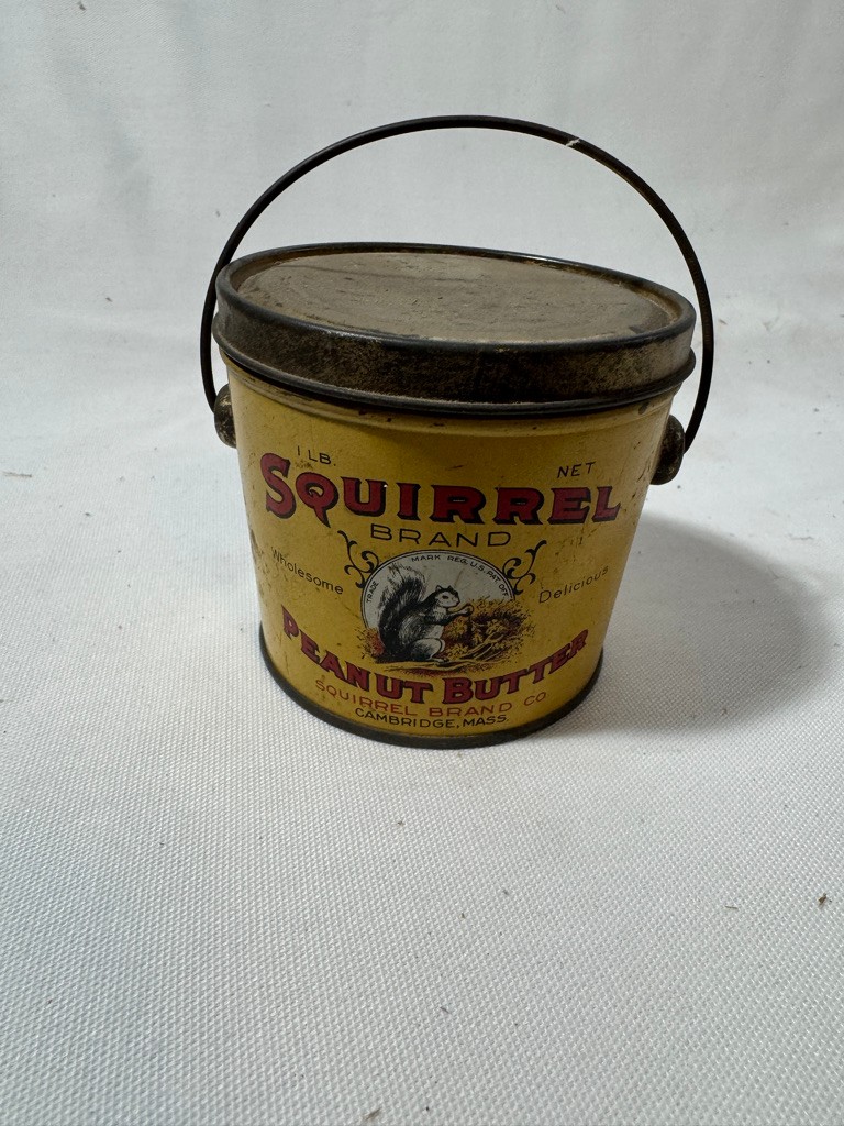 1 Lb container Squirrel Brand Cambridge,Ma.Height of container is 3 1/2 inches diameter is 4 inches