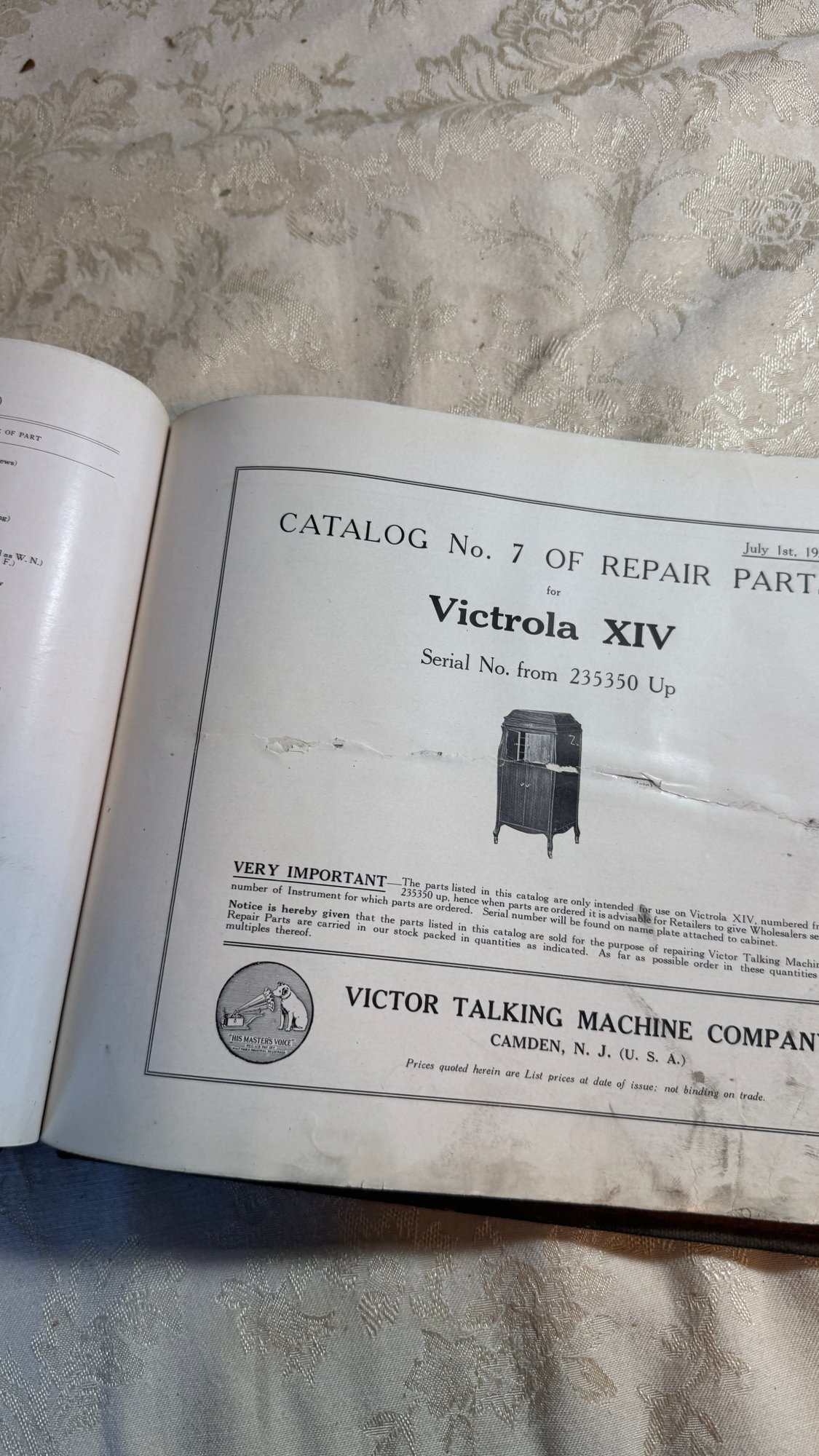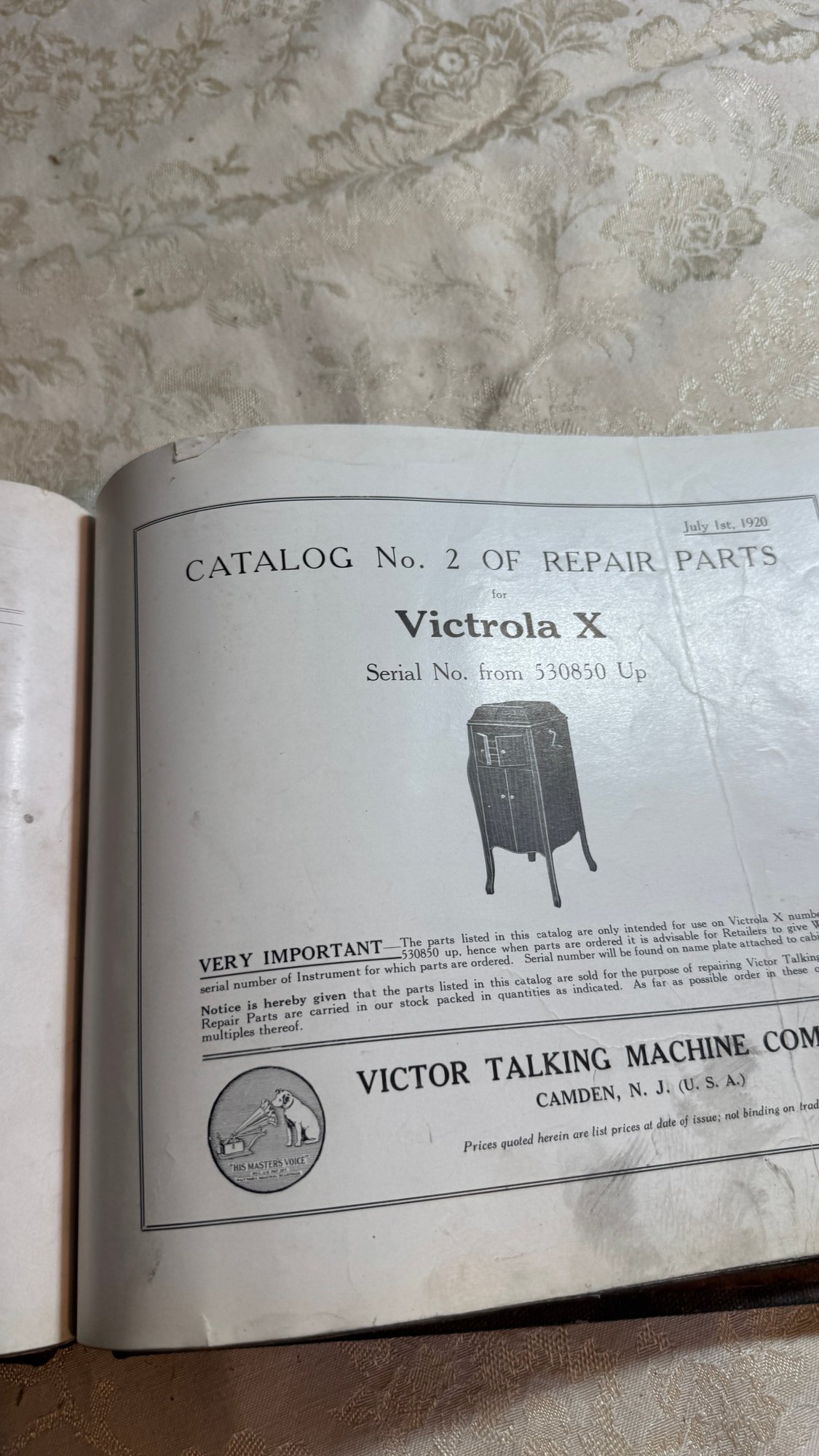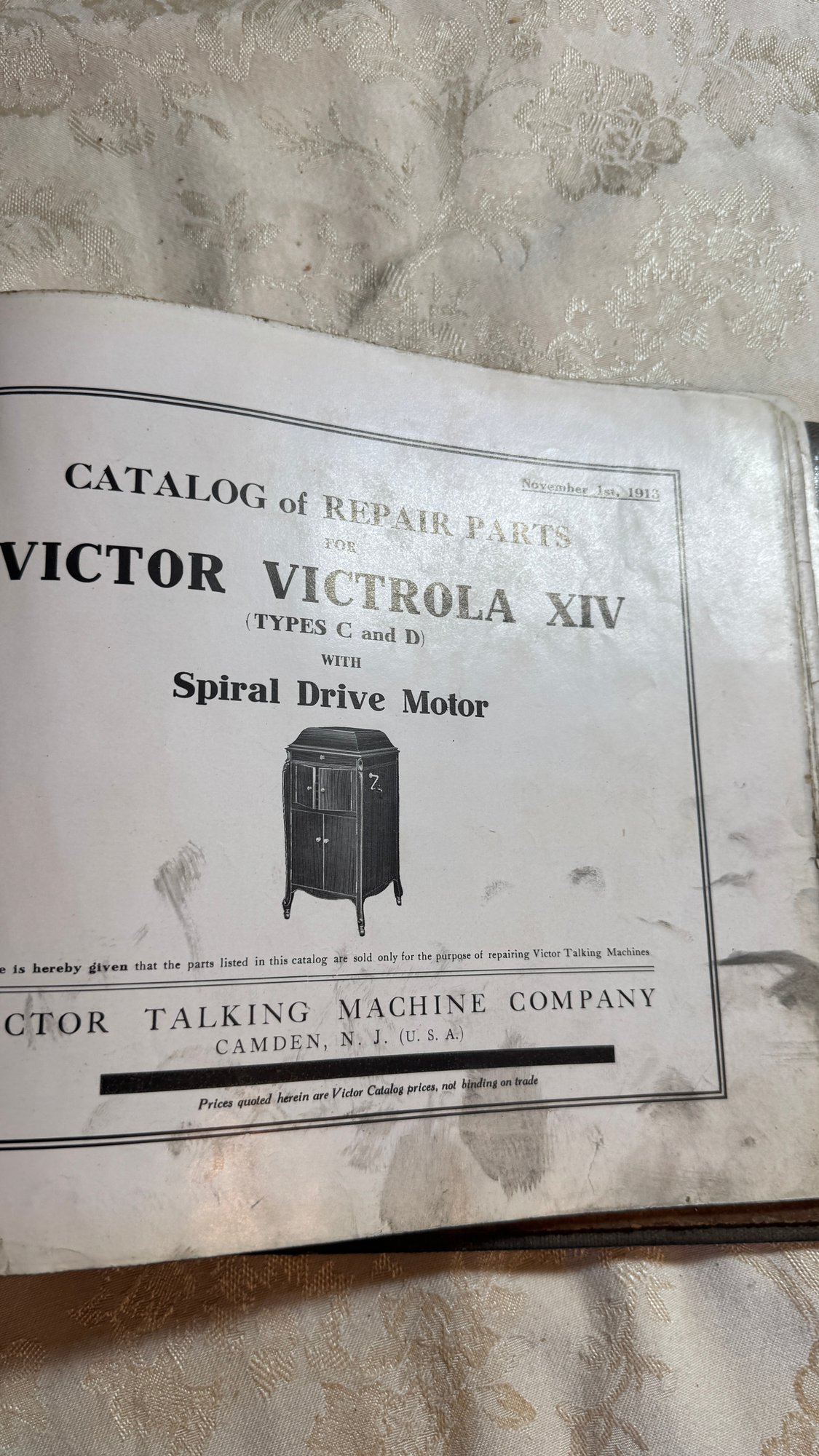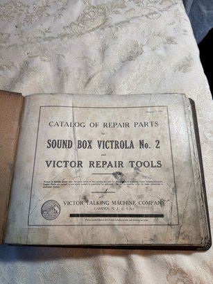 Old victor talking machine repair parts catalog Shown are some of the pages of the book