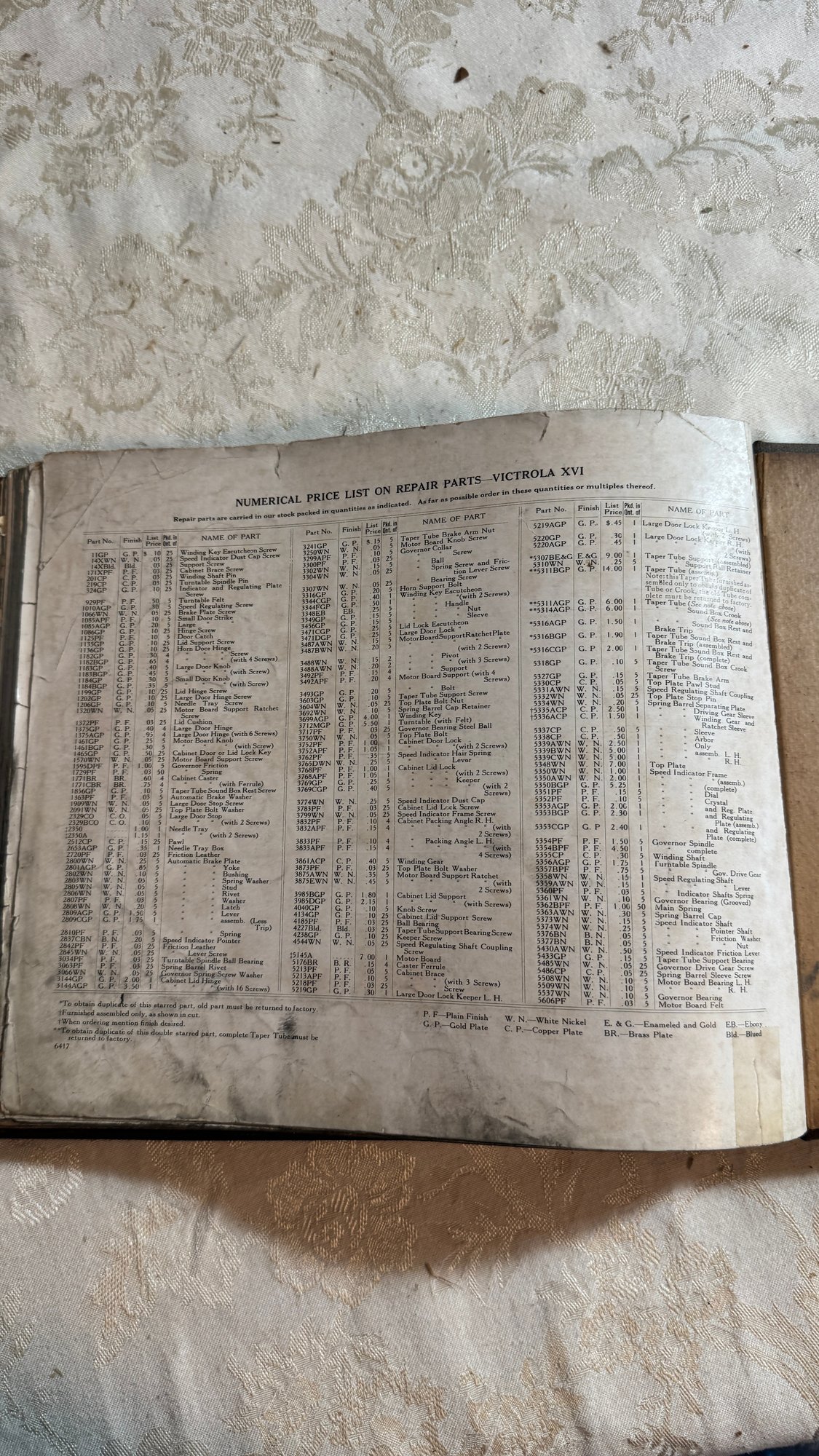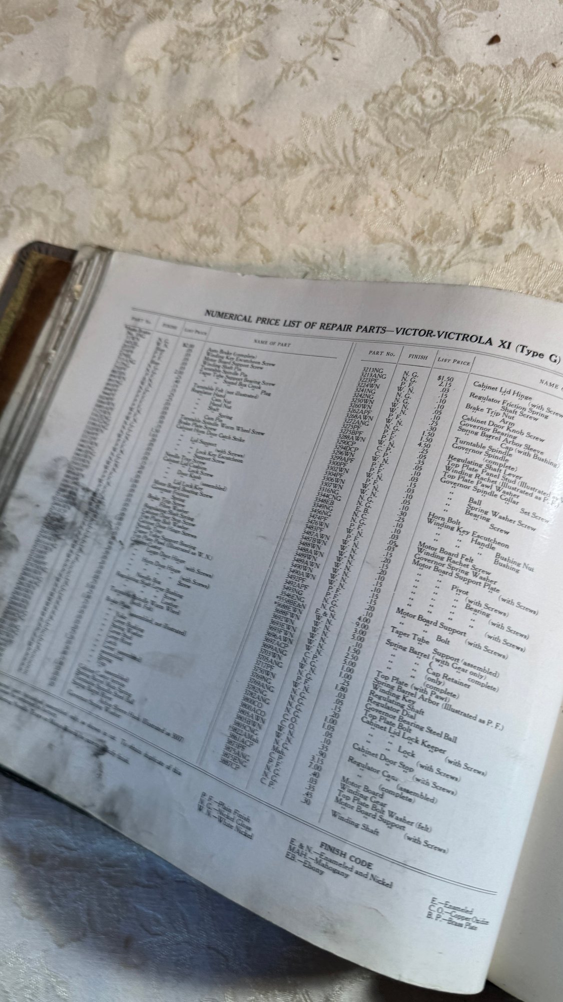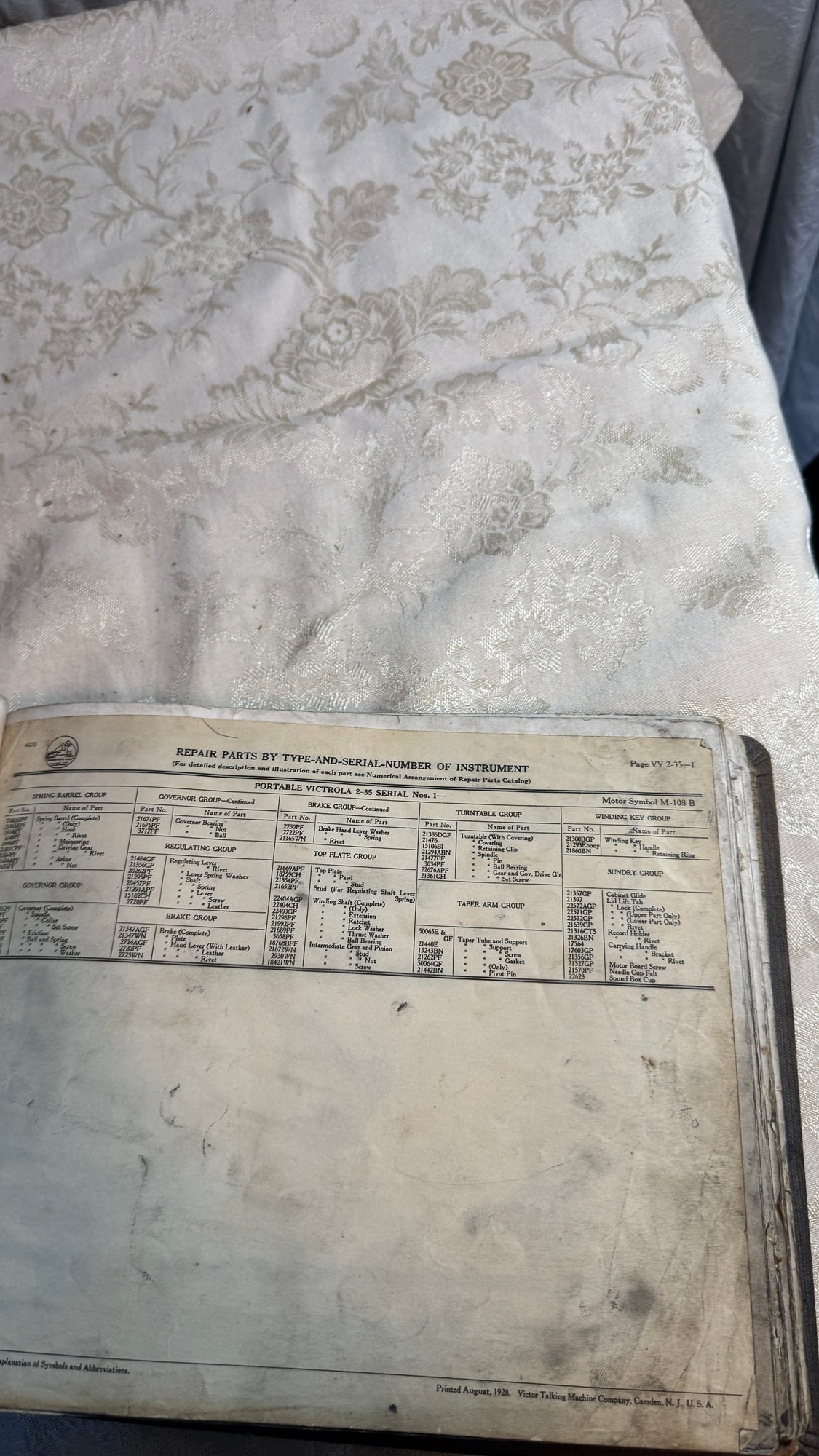 Old victor talking machine repair parts catalog Shown are some of the pages of the book