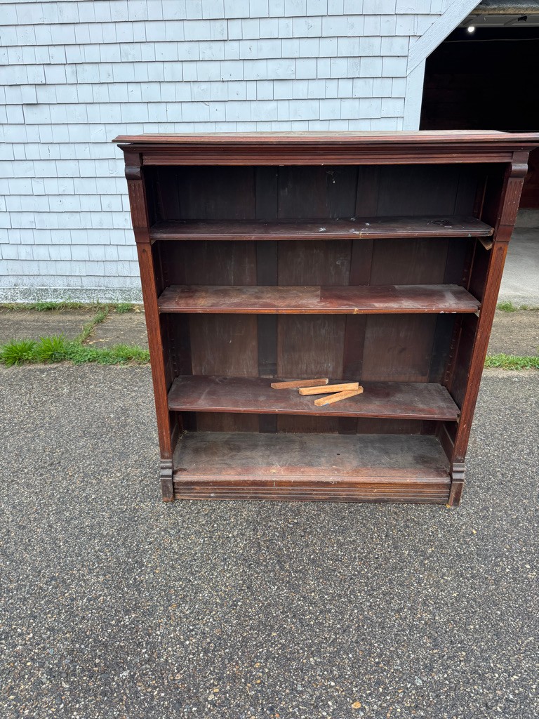 Victorian bookcase 50 inches wide 14 inches deep and 54 inches tall has adjustable shelves good for storage.