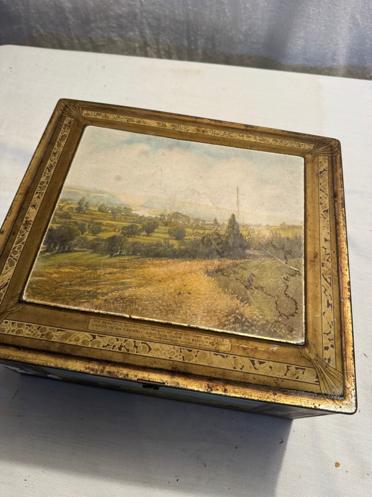 Decorated Beechnut metal box . The box is 12 1/2" long 11" deep and 6" tall . Good advertising box