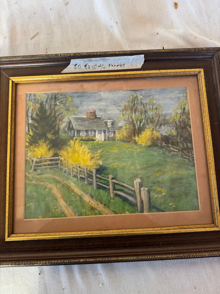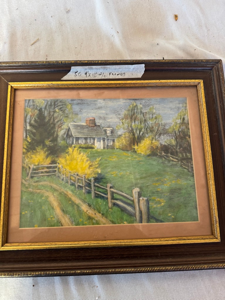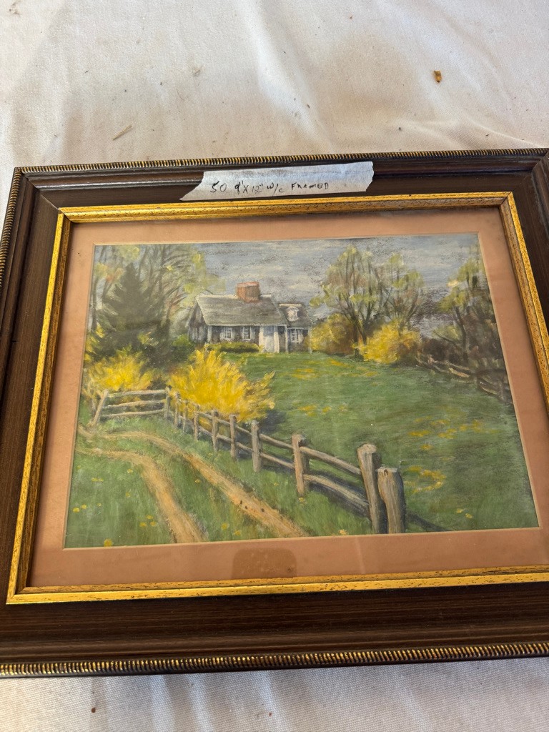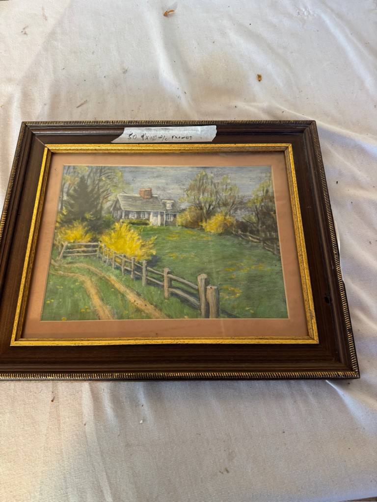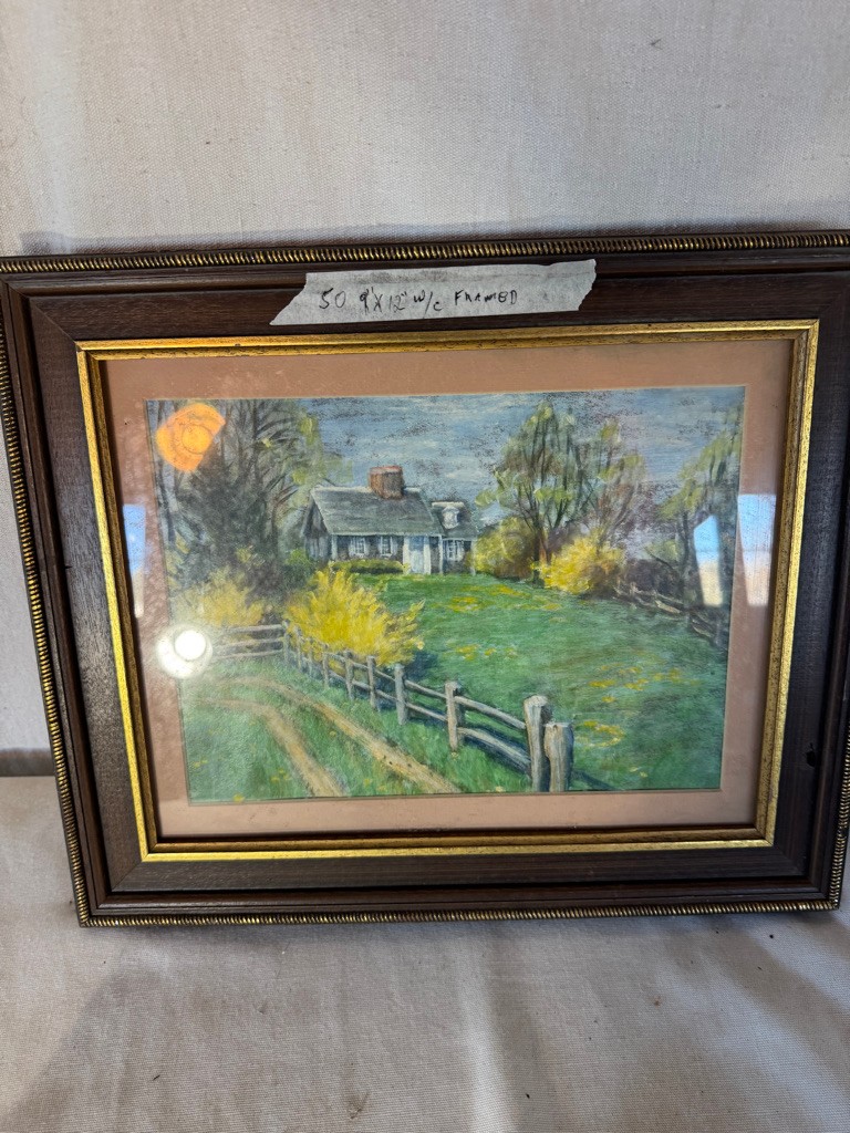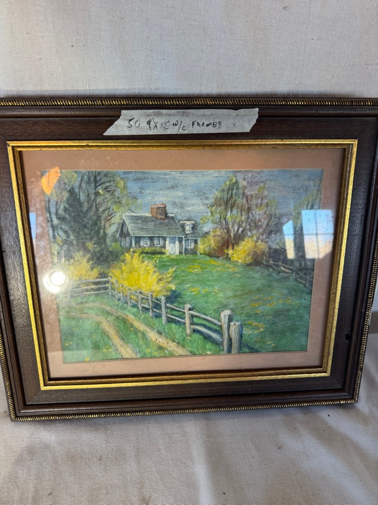 Framed w/c of House and fence 9"x12"