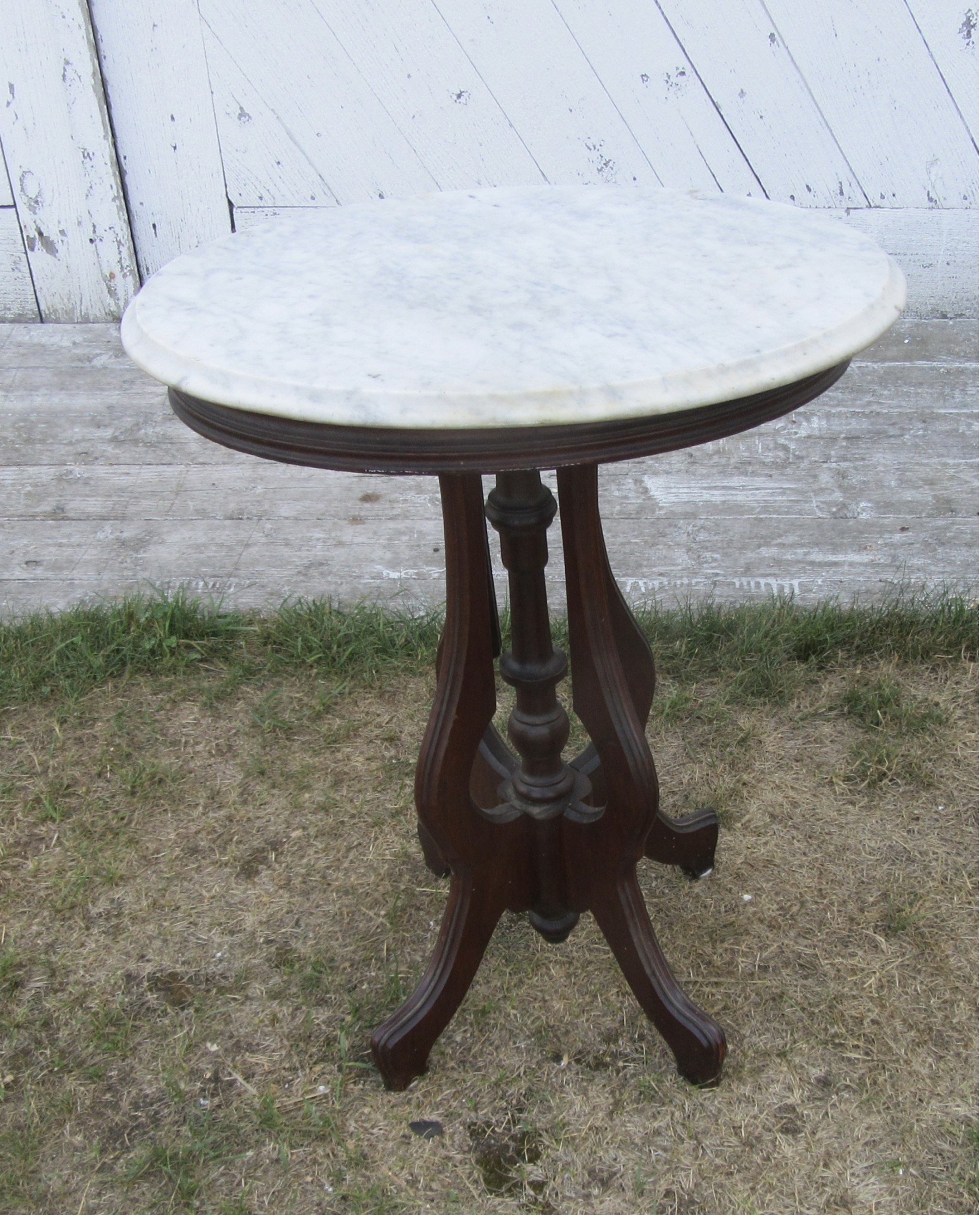 Oval white marble top table ,walnut base 19th century