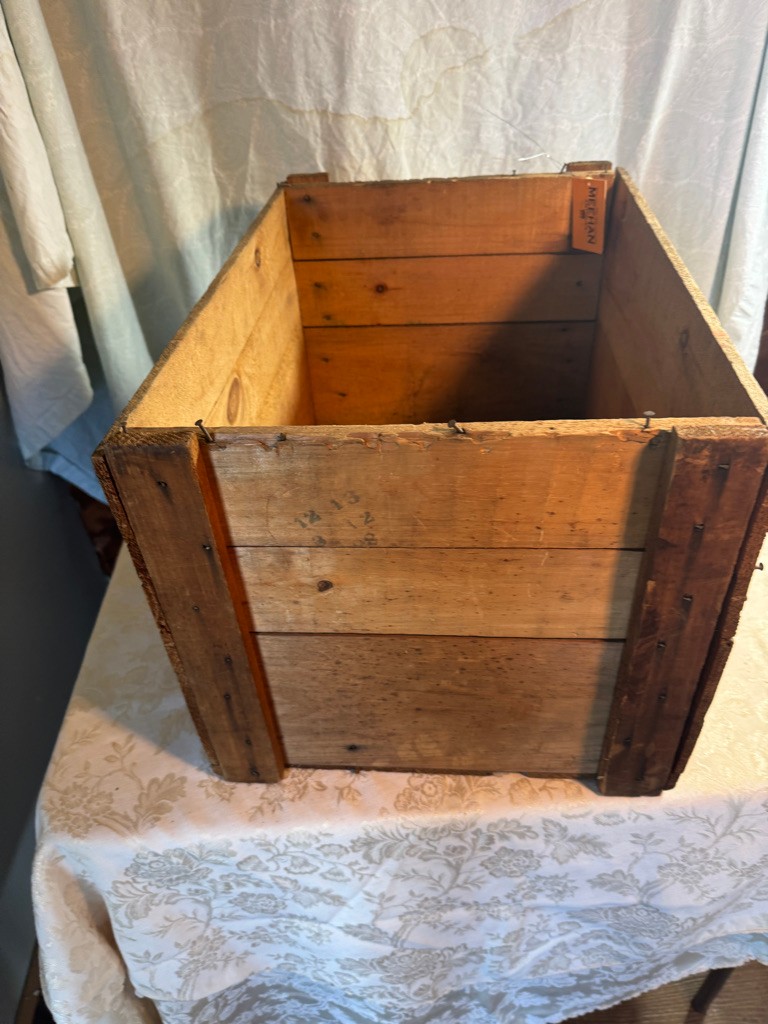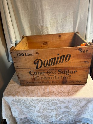 old Domino Sugar wooden shipping box 14 inches tall 16 inches deep and 23 inches long.