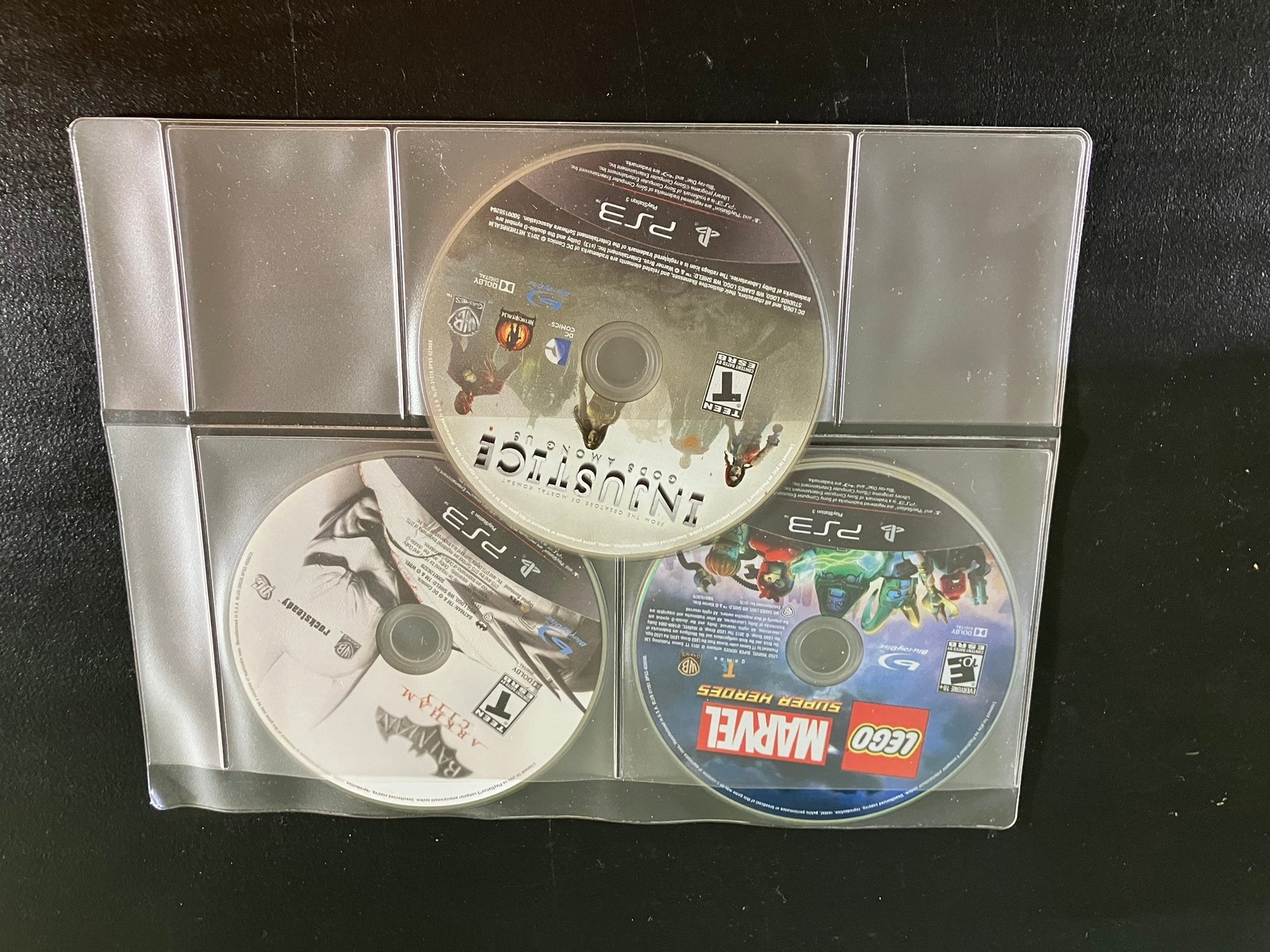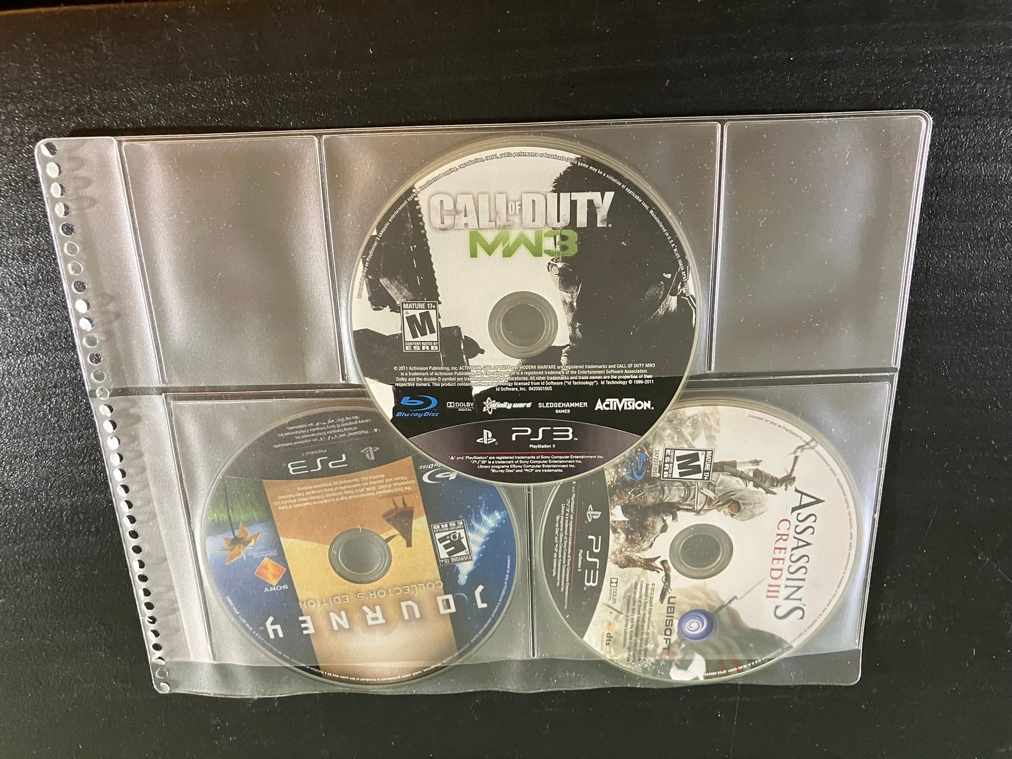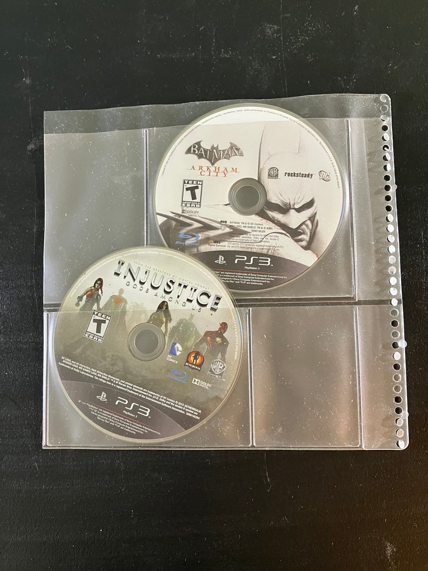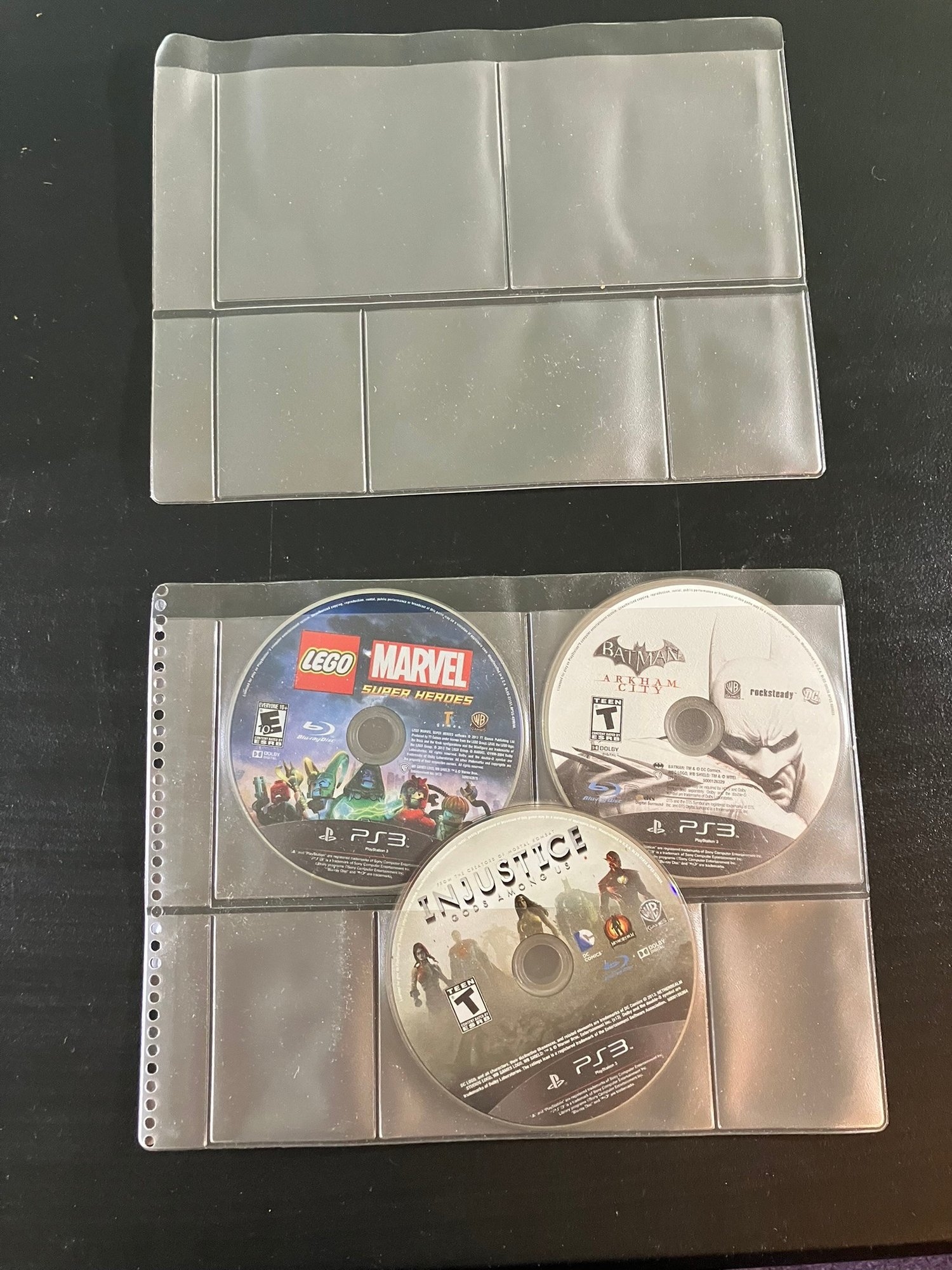 In the pictures, I have populated the sheets with random video game discs I found in my house. I am using TWO sheets so you can see what these sheets look like both untouched and with holes punched in them so that they can be bound using a standard "Trubind" coil binding system. I also show the FRONT and BACK sides of each vinyl sheet.