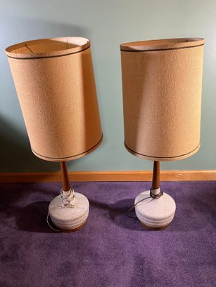 a Pair of Mid Century Modern Lamps, these both work great, and I've put LED bulbs in each of them. Very beautiful lamps. This is for both lamps. Diameter of each lamp's shade: 13". height of JUST the shade: 18". Overall height of the entire lamp including the lampshade: 37.5".