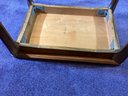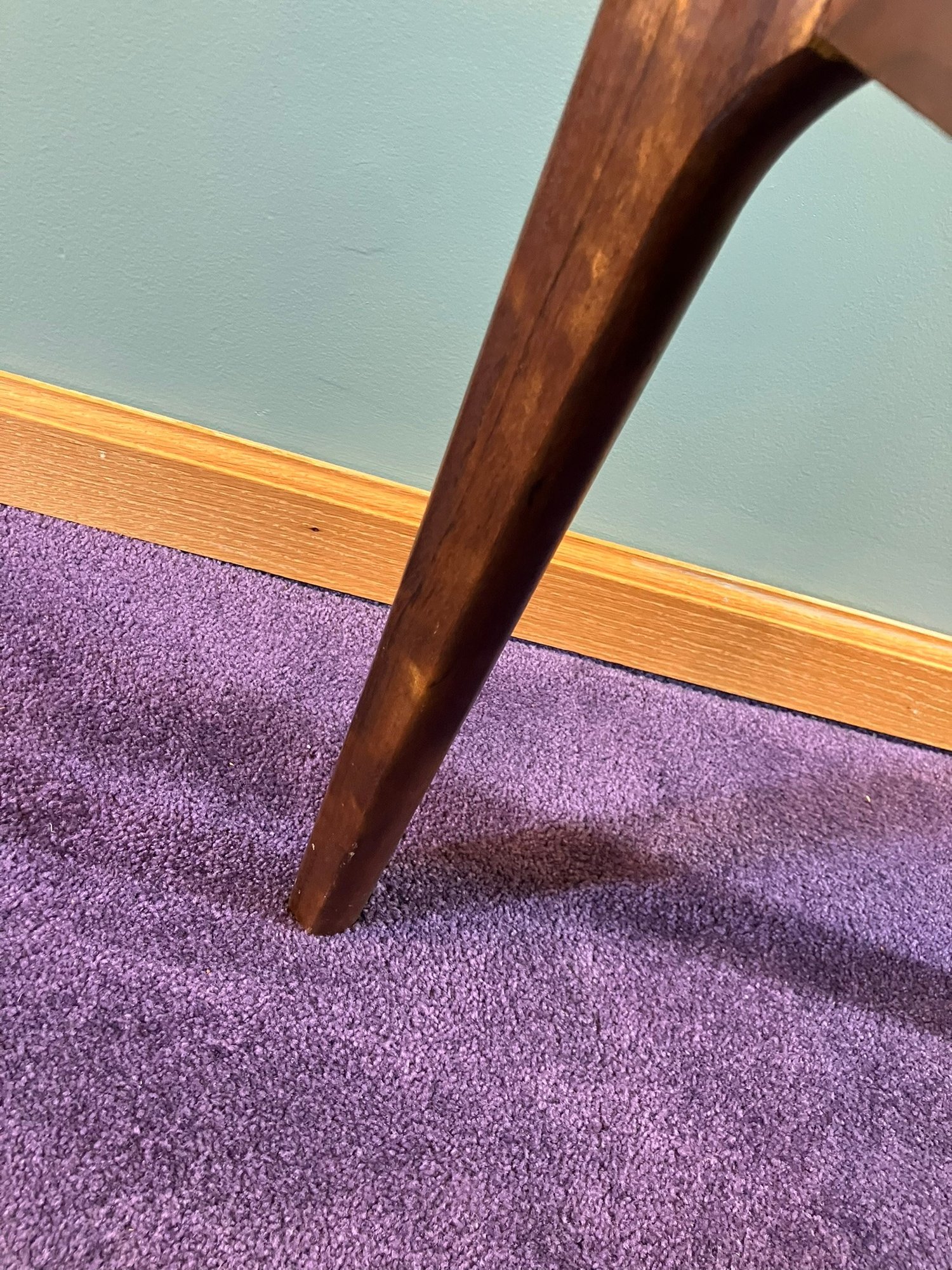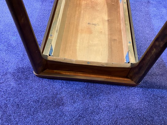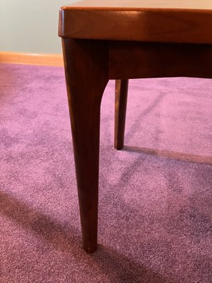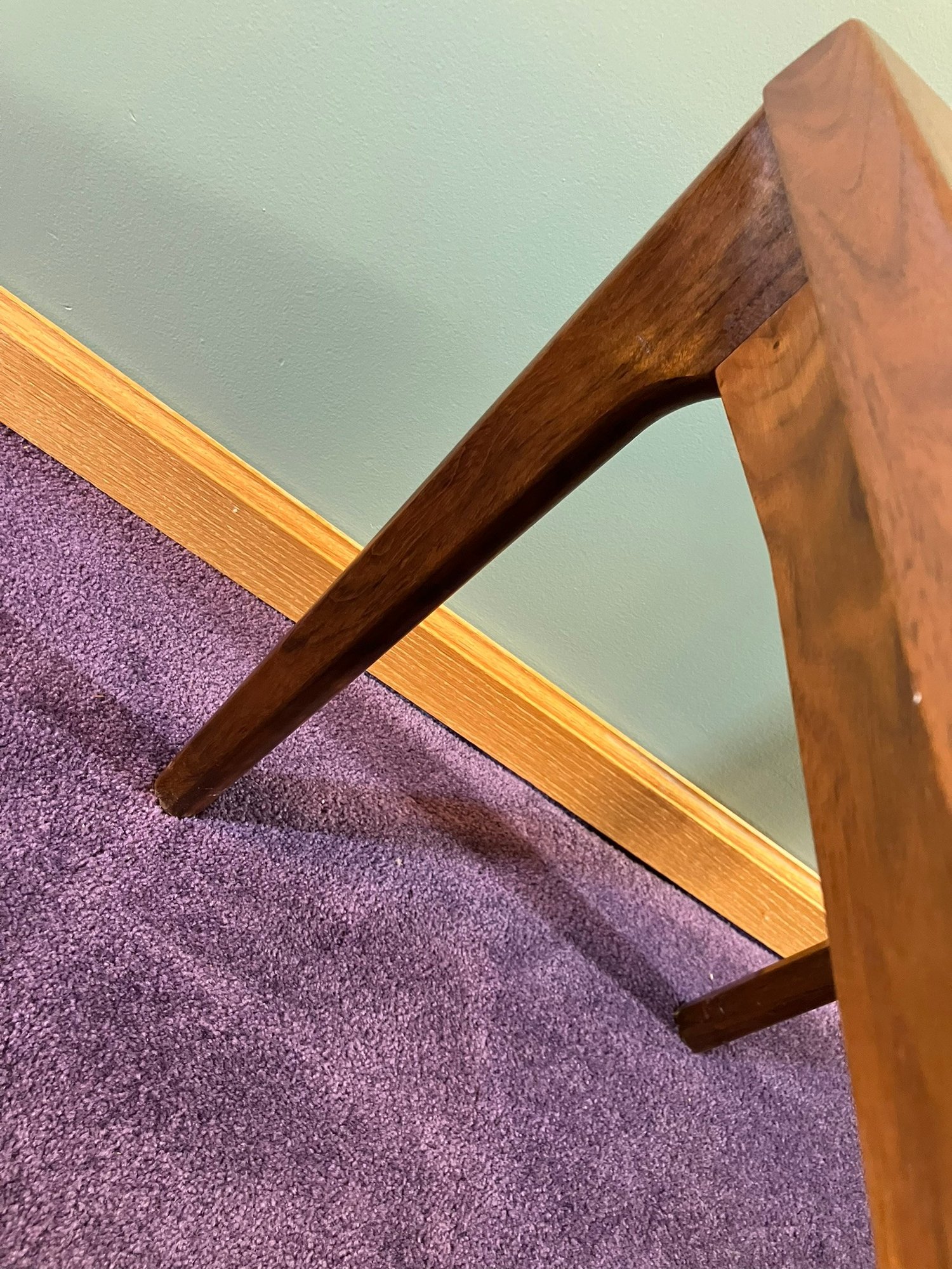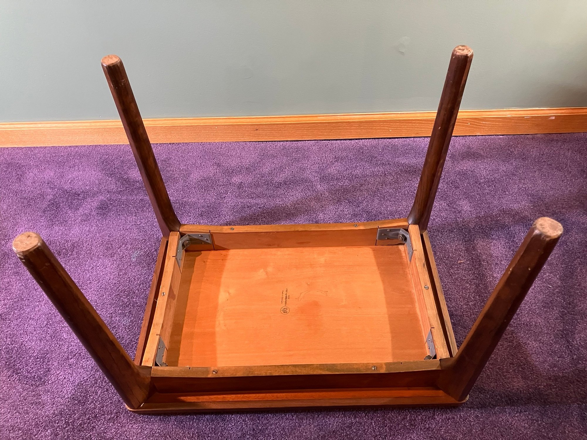 Danish Teak Side Table by Vejle Stole & Møbelfabrik. This is a lovely Danish teak side table by Henning Kjærnulf for Vejle Stole & Møbelfabrik. It has sculpted solid teak legs that are mounted at an angle and a framed teak top. It is in excellent condition, especially considering it was made probably in the 1960s or 1970s.