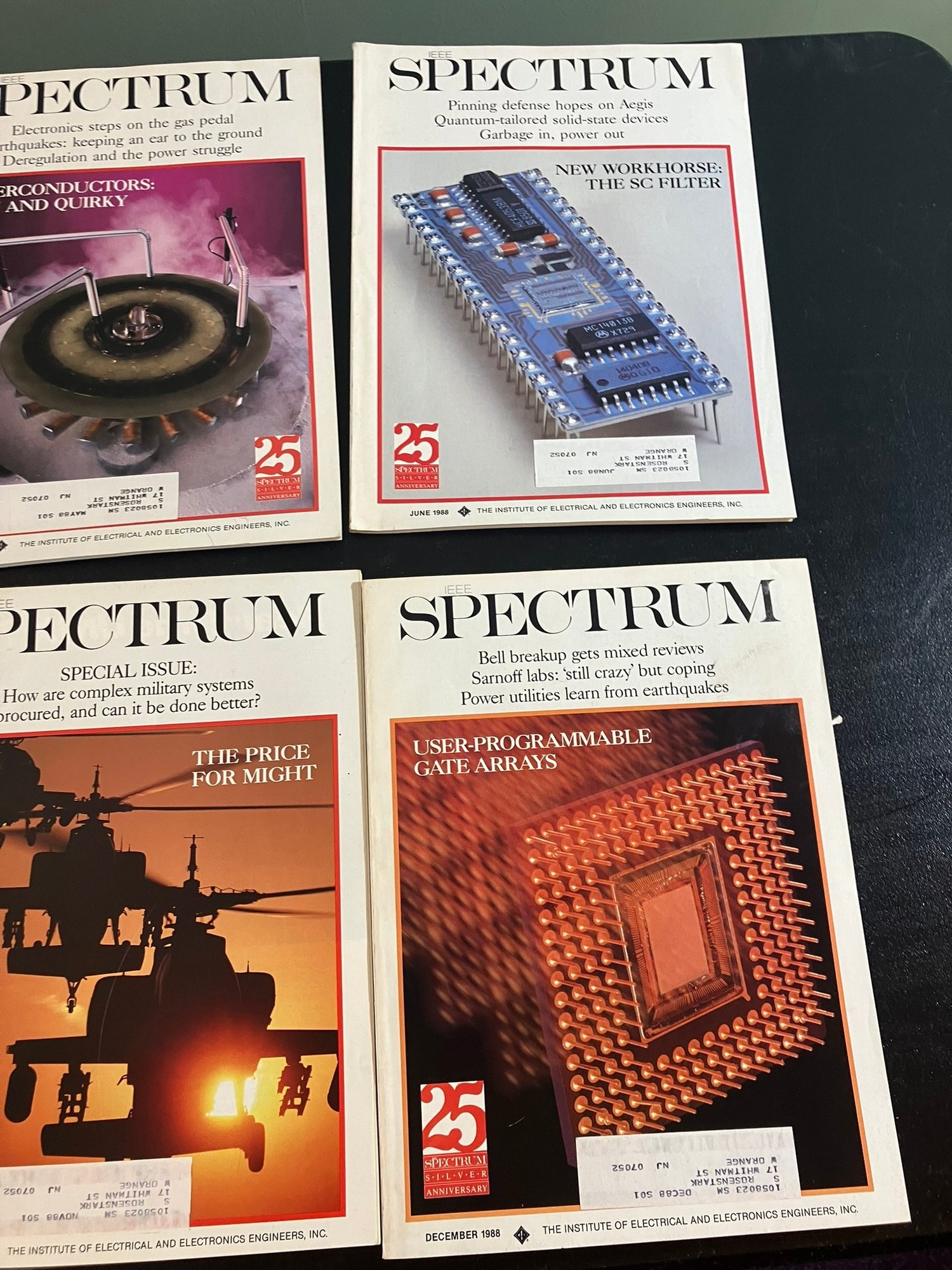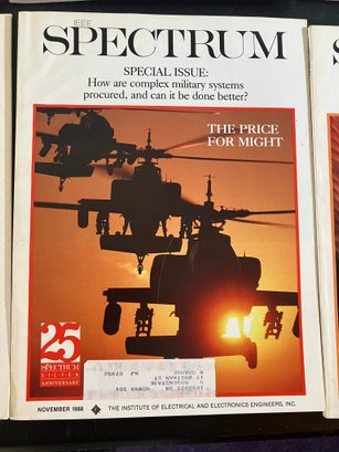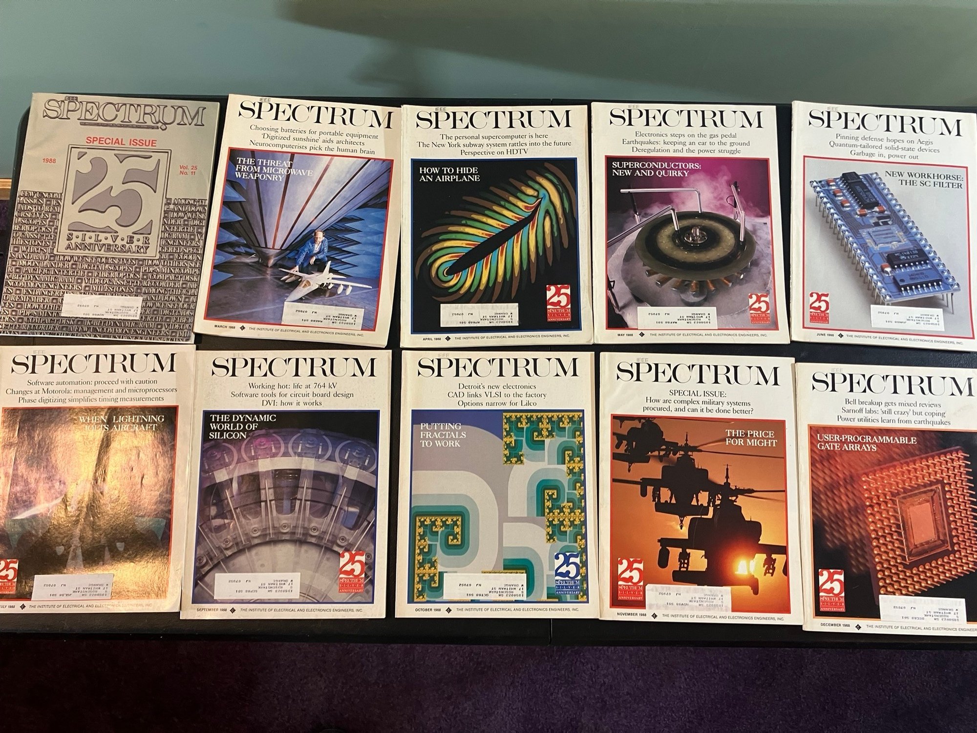 IEEE Spectrum Magazine, 10 issues from 1988: March - July & September - December, Includes 25th Anniversary mag. So you get: The 25th Anniversary Magazine, March, April, May, June & July 1988, plus September, October, November & December 1988. Each of these is in excellent condition.