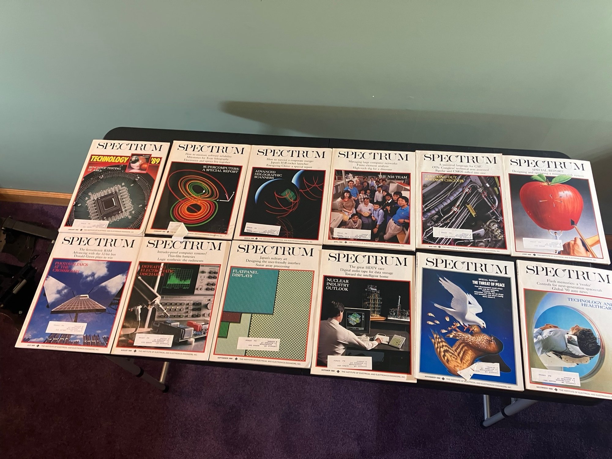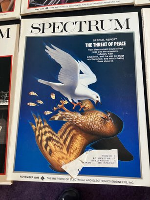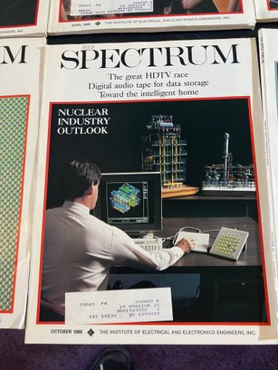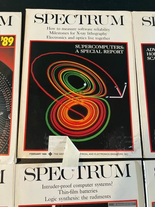 IEEE Spectrum Magazine, 12 issues, consisting of the entire year of 1989. These are all in excellent condition. Forgot to take an individual pic of October, but it's in there--you can see it in the goup pic (nuclear energy).