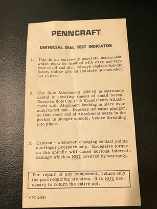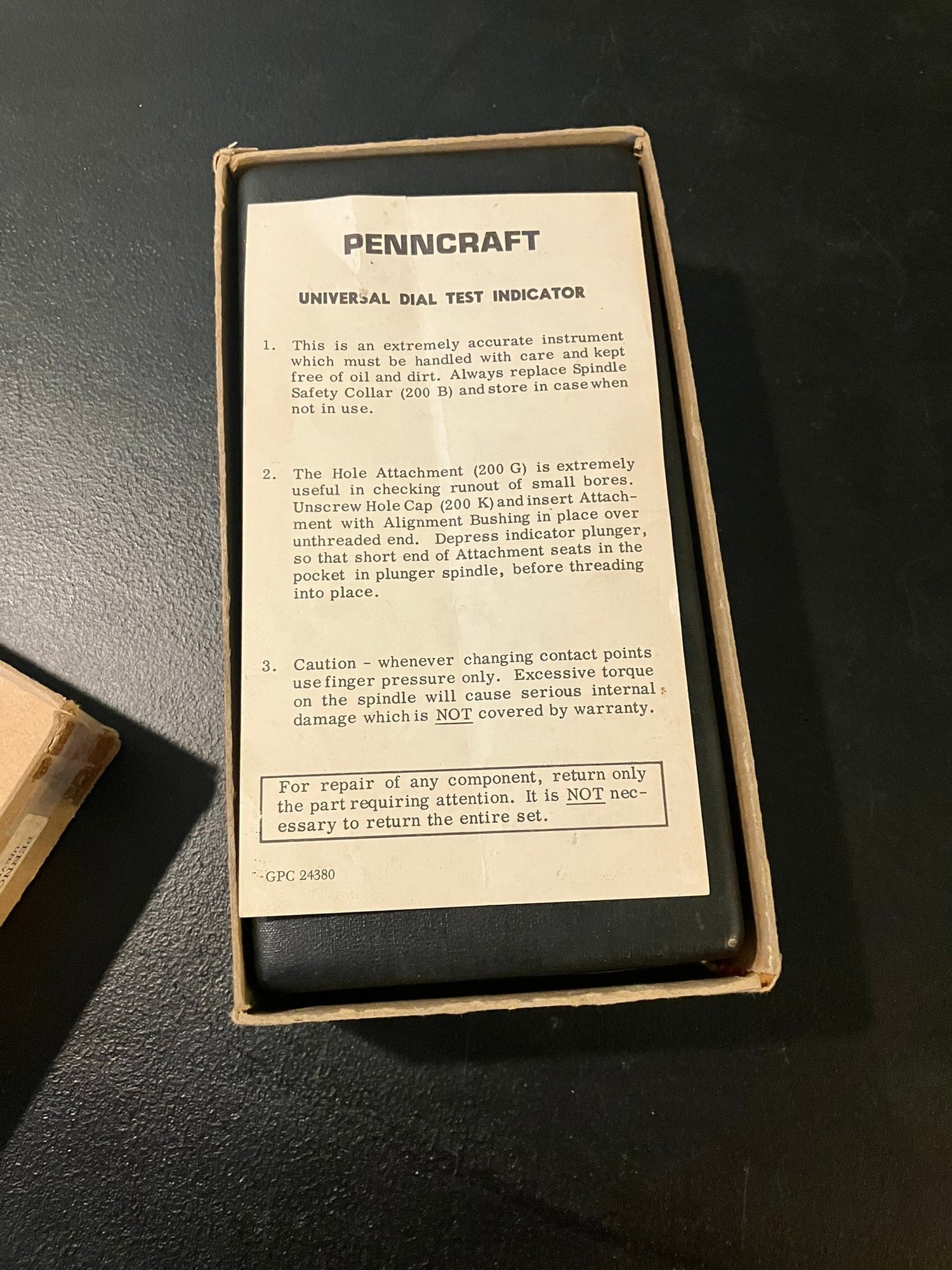 Penncraft Universal Dial Test Indicator set. Amazing condition considering its age.