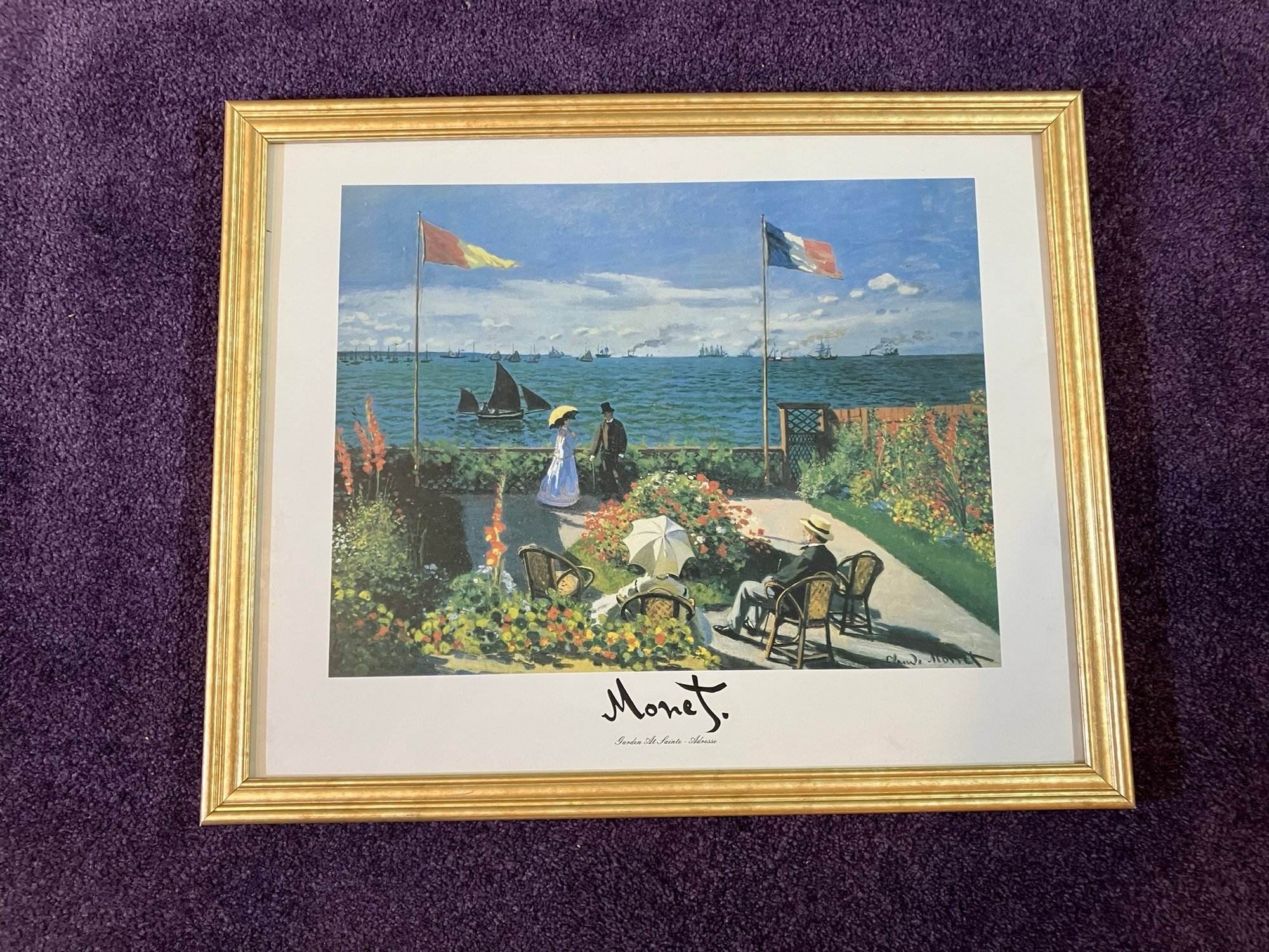 Framed Monet Print Wall Art Measurements: 21.5" x 17.5. Excellent condition.