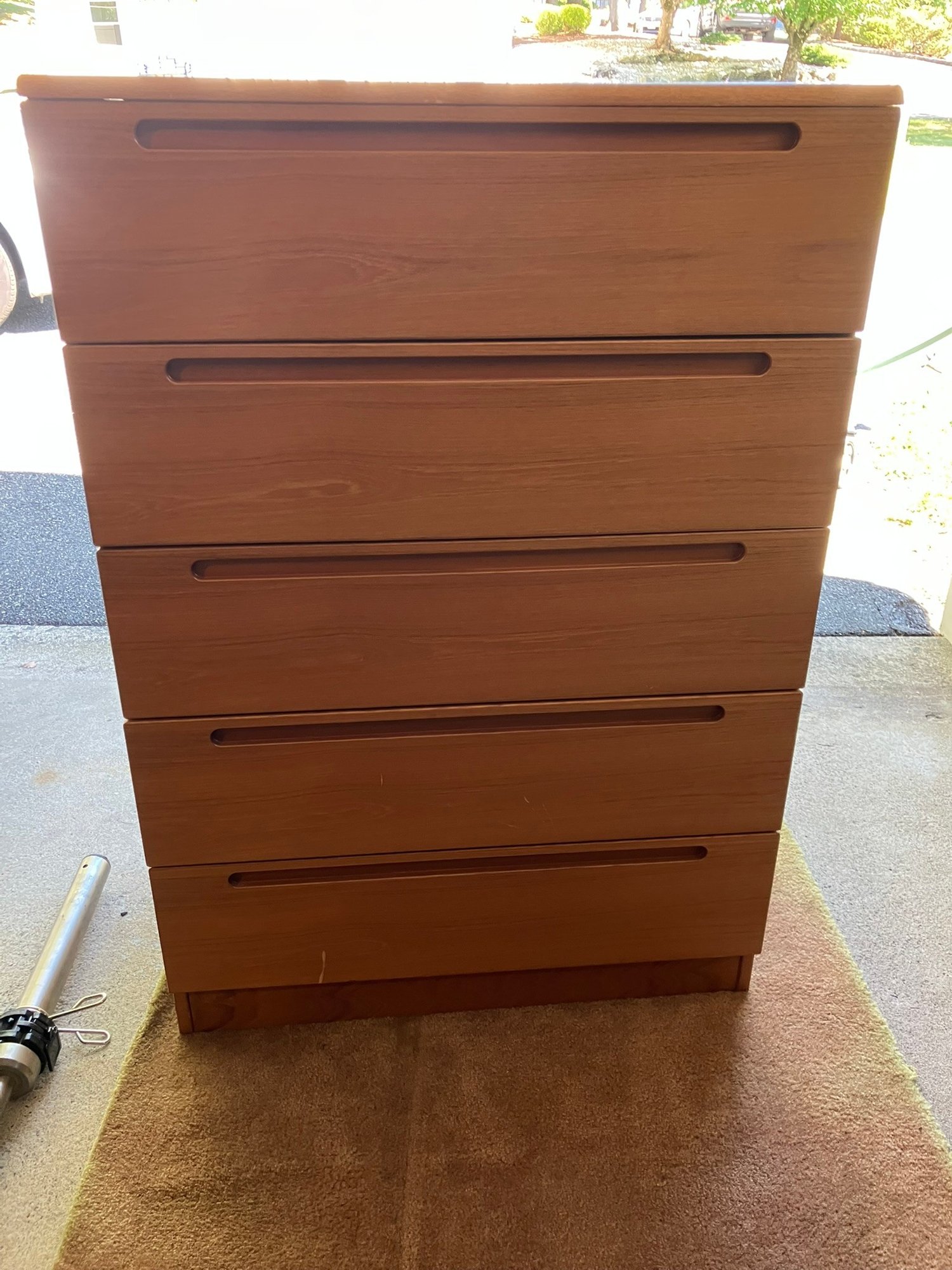 Hardwood Teak Dresser. Every drawer has dividers in it to subdivide each drawer into three equal sized parts.