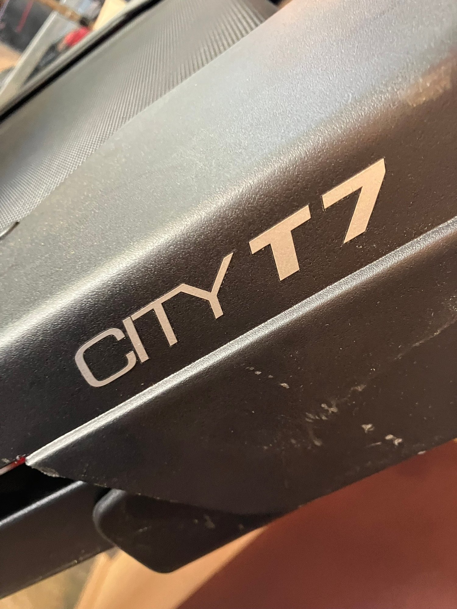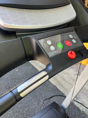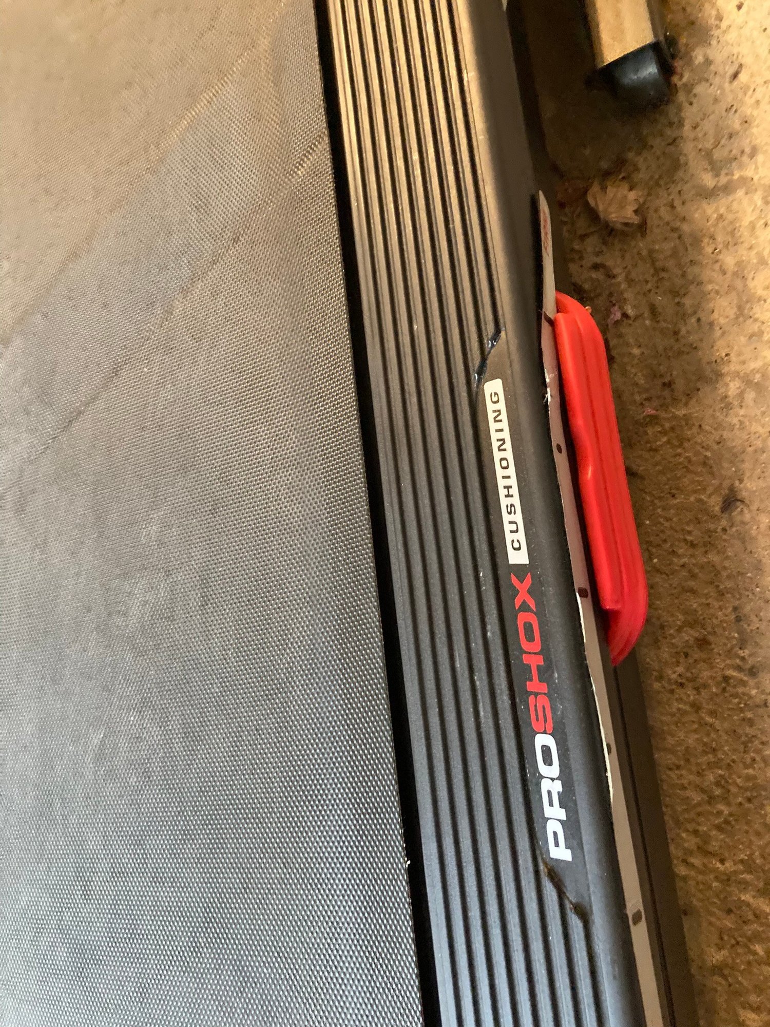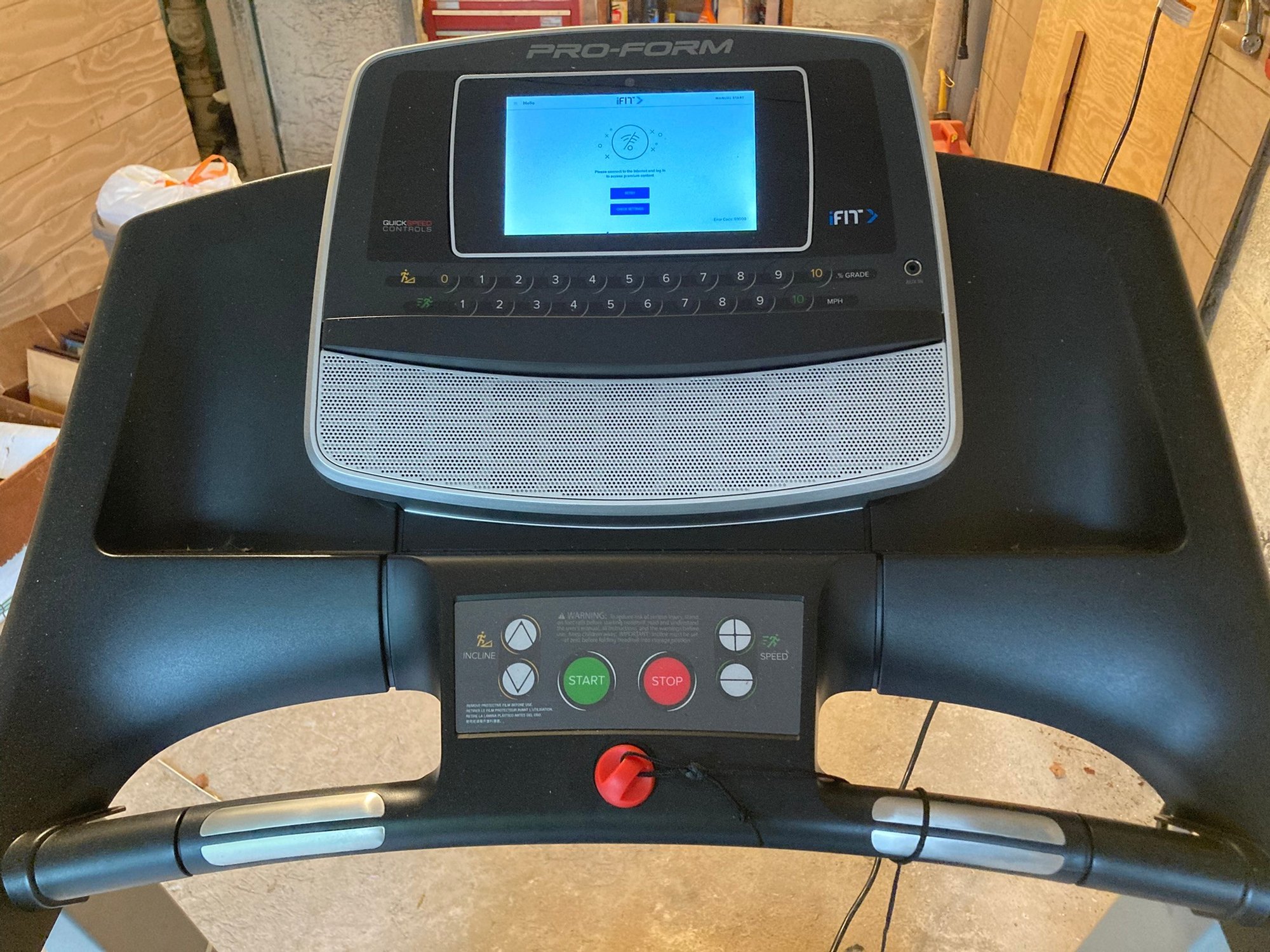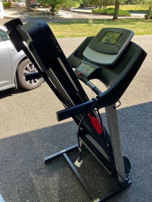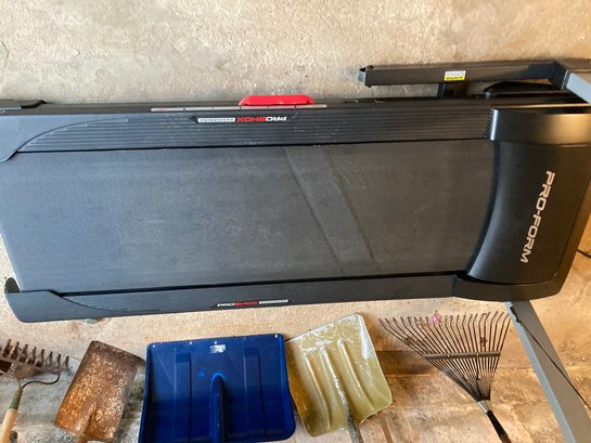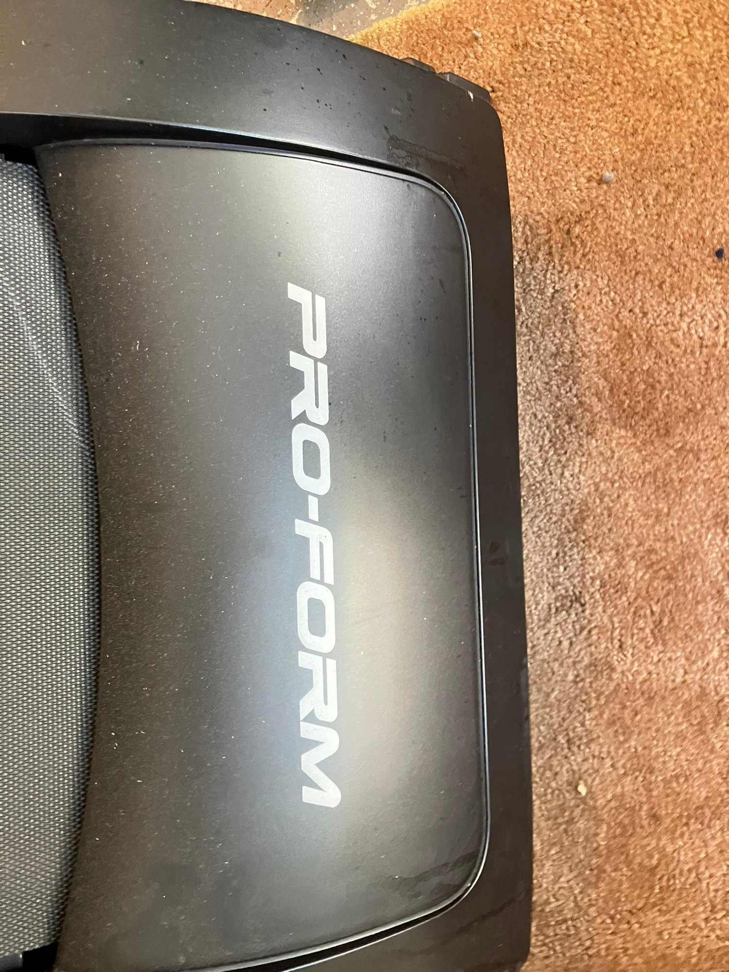 ProForm City T7 Treadmill, with height & speed adjustments. This is in excellent condition. It can also measure your heart rate through the hand grips. The treadmill folds up and then you can move it around on these little wheels it has. Cool stuff. Also, I recently found the manual so that's included as well.