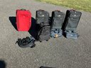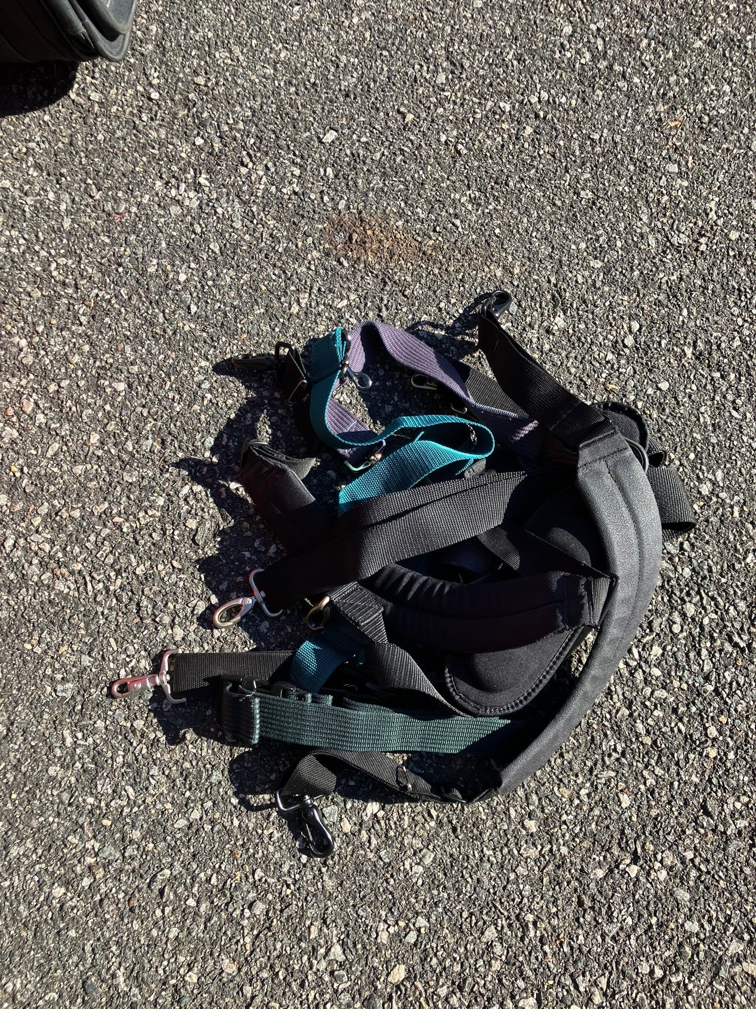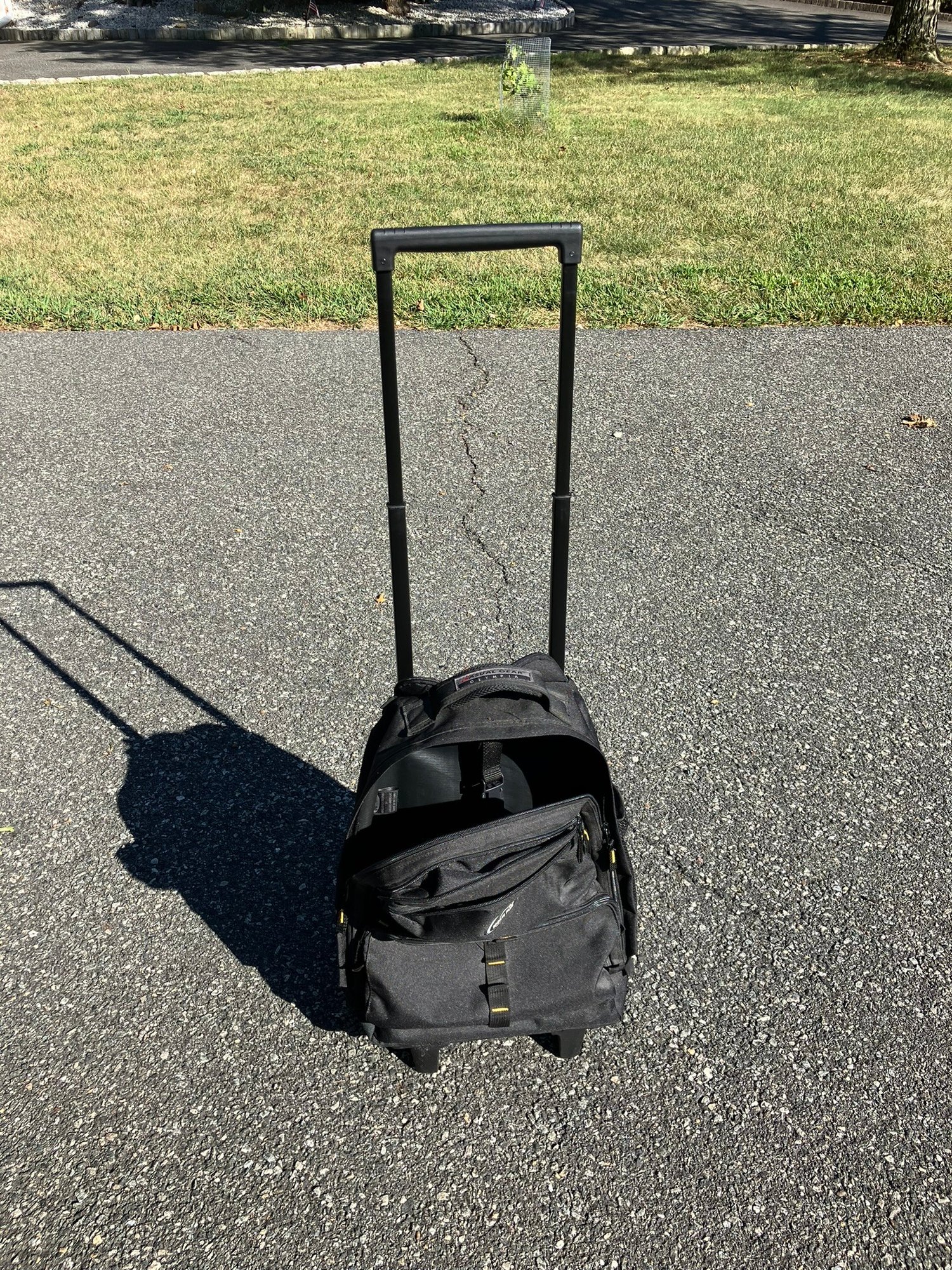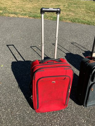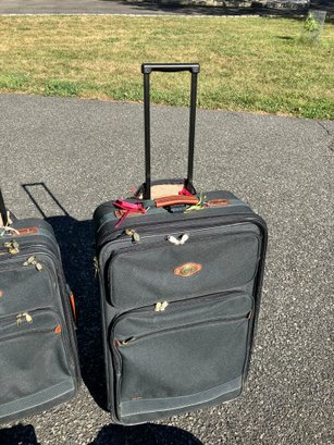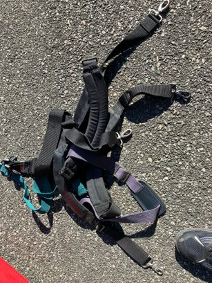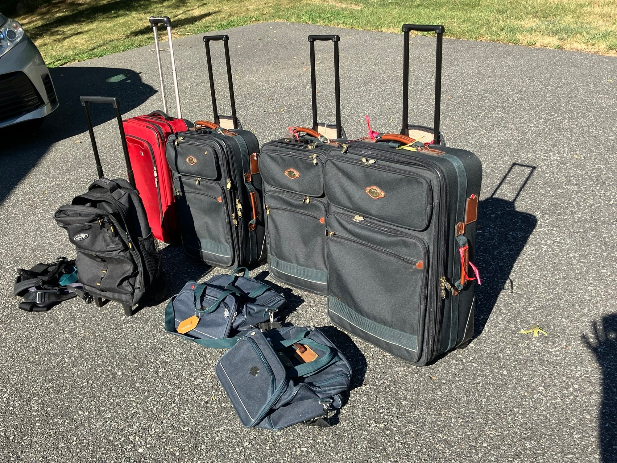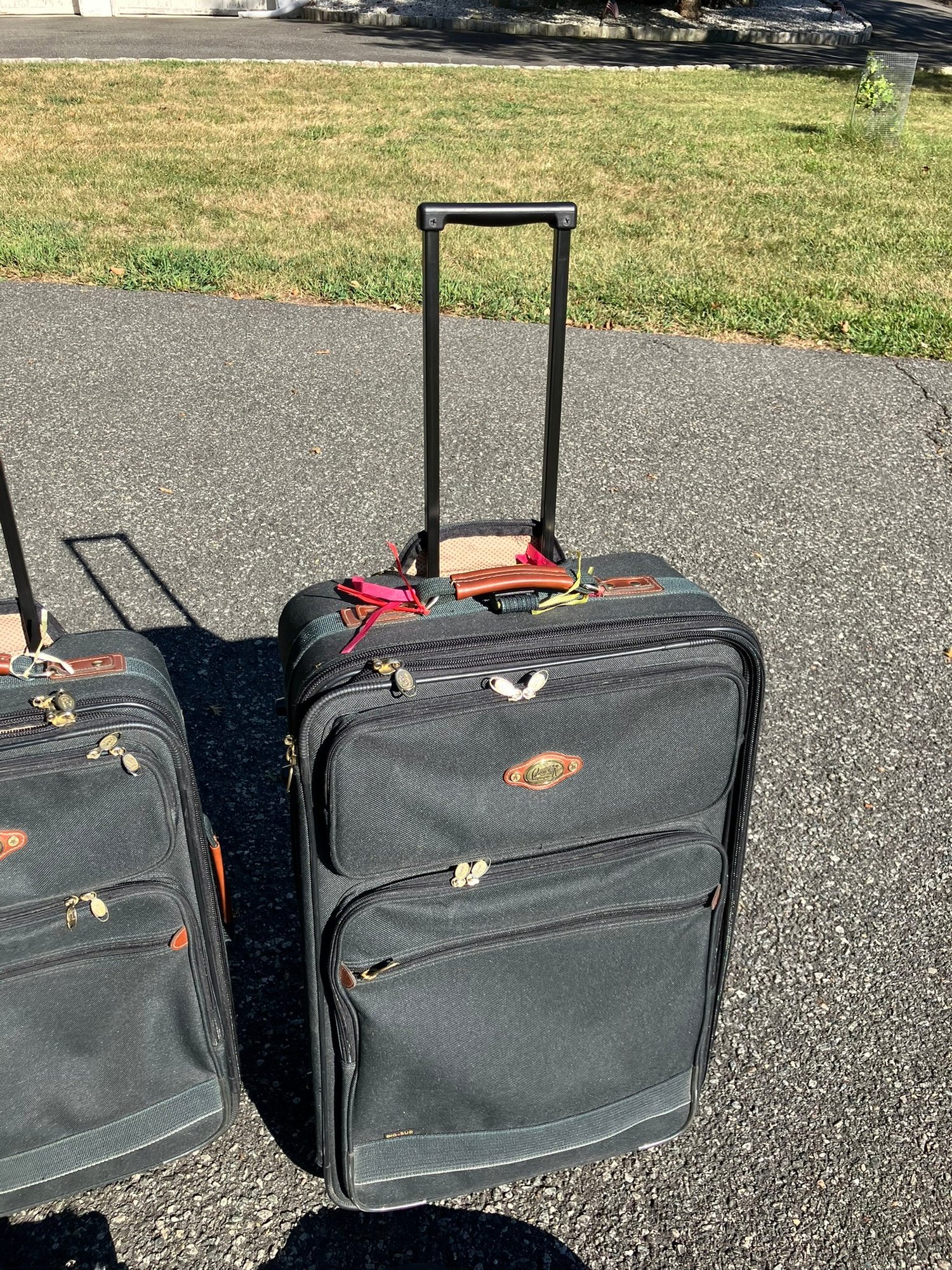 Set of Luggage: 1 large, 3 carry-on, 2 small duffels, a garment bag, and a backpack. The three green pieces, namely, the large (18"x8"x25") and twp "carry-ons" (22"x7"x15") are all by Ricardo of Hollywood. The other Carry-on is a Victorinox carry-on, same size as the other carry-ons (22"x7"x15"). The two smaller duffel-style bags (18"x12"x6") are both Skyway. Finally the backpack is a Sports Plus/Olympia. Nice stuff. And in Excellent condition. The backpack is currently full of straps for the other pieces of luggage, that's what the pile of straps pic is all about.