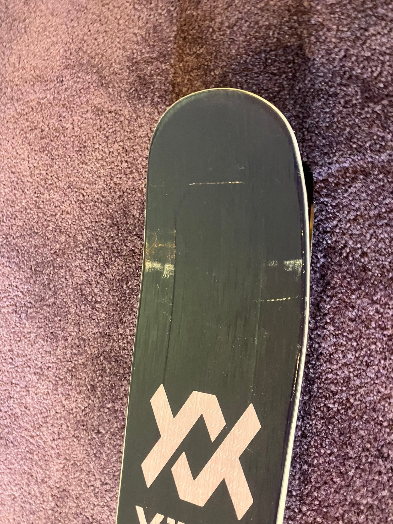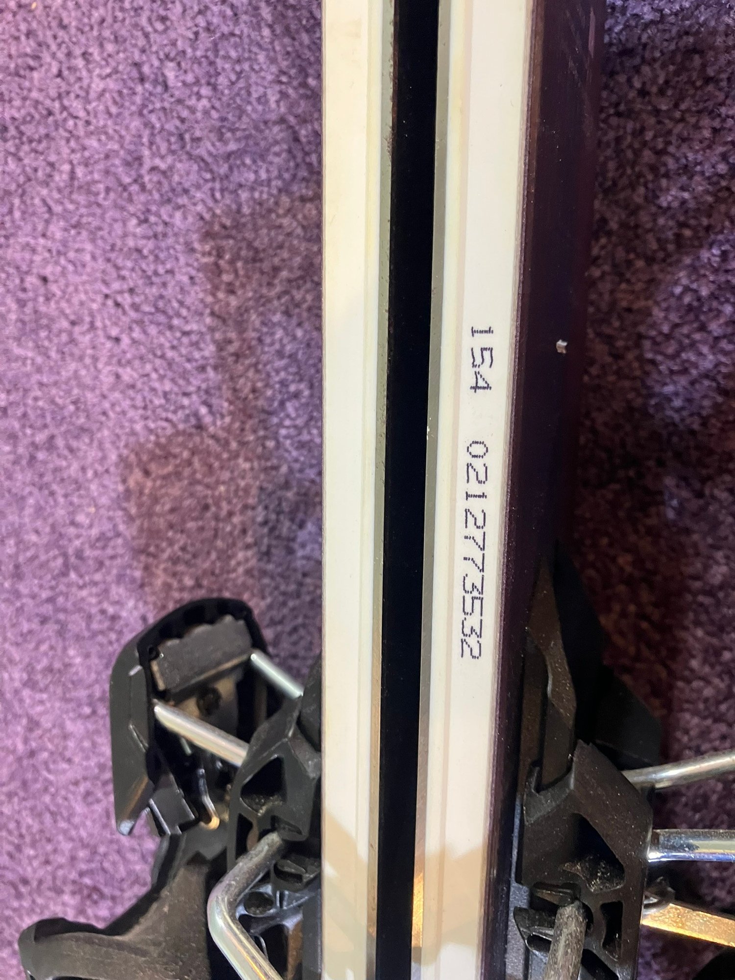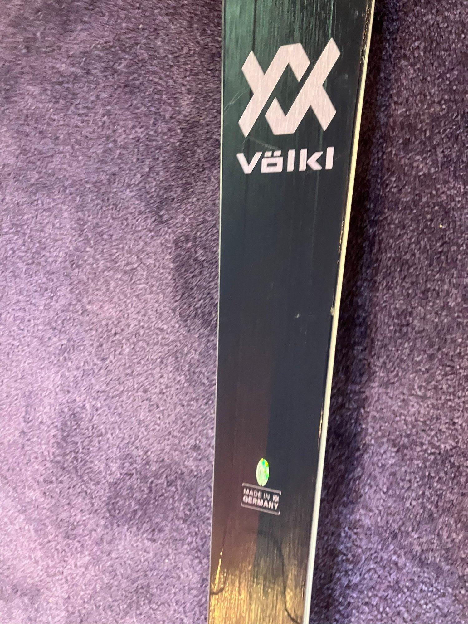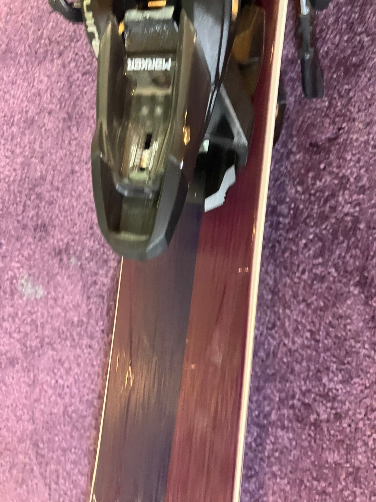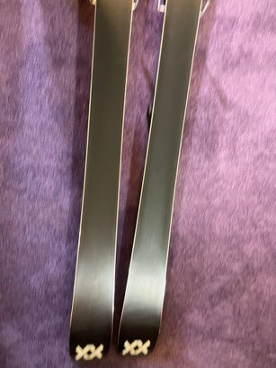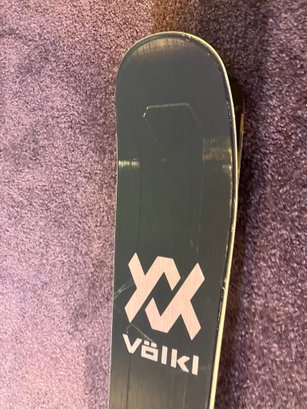 Volkl Women's Yumi 80 Skis 154cm long, with installed marker bindings, near-mint condition. These have almost zero usage on them--unfortunately my wife had the bindings cranked up way too high and she fell during her first 100 feet of skiing for the year and injured herself, and they haven't been used since then. These skis literally have less use on them than a pair of skis that have been demo'ed for one run. Anyway. Make sure you adjust the bindings to match your skill level and body type before using them!