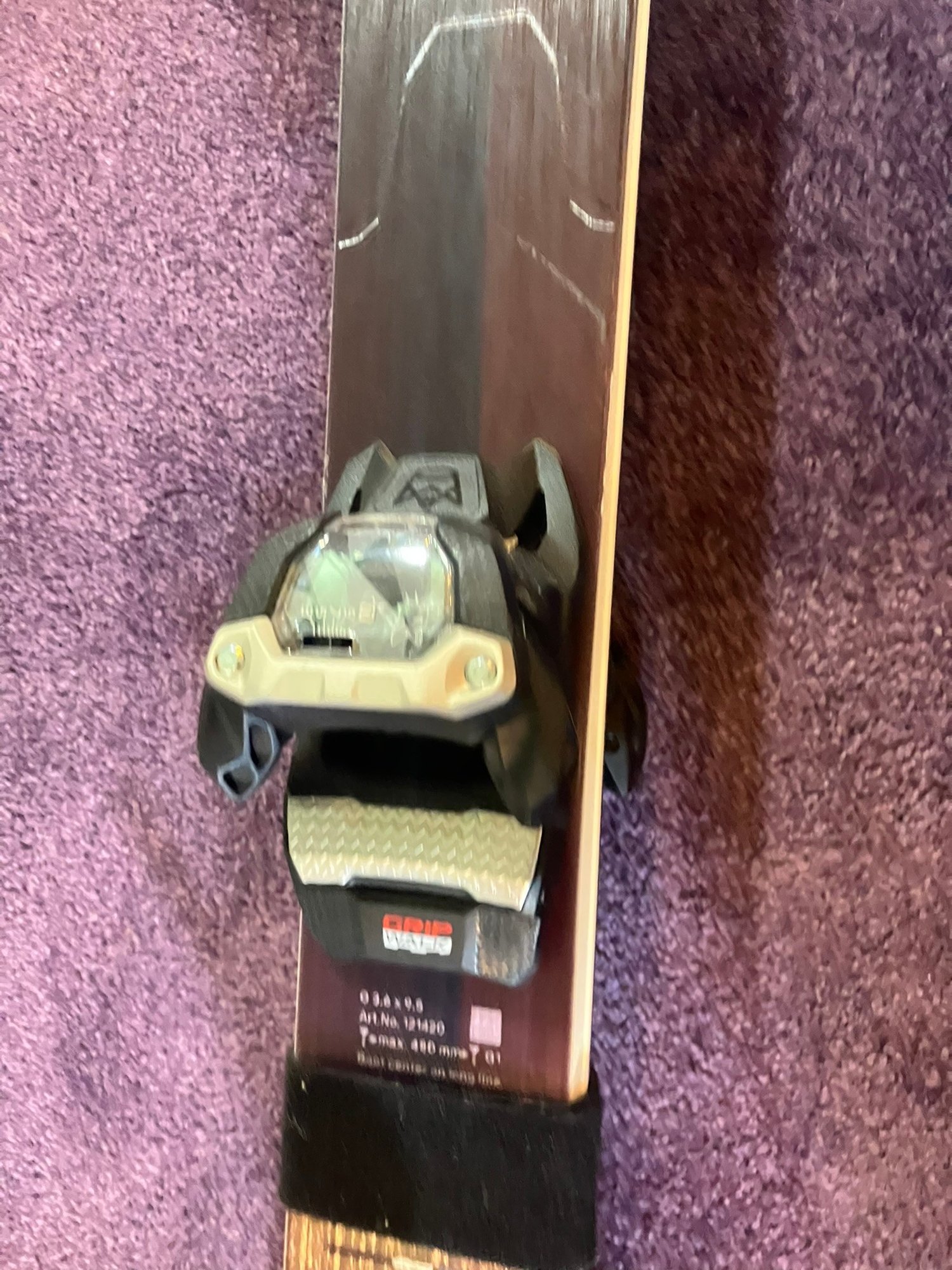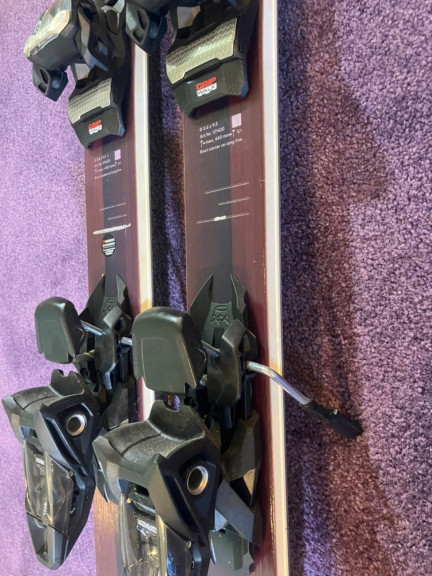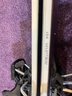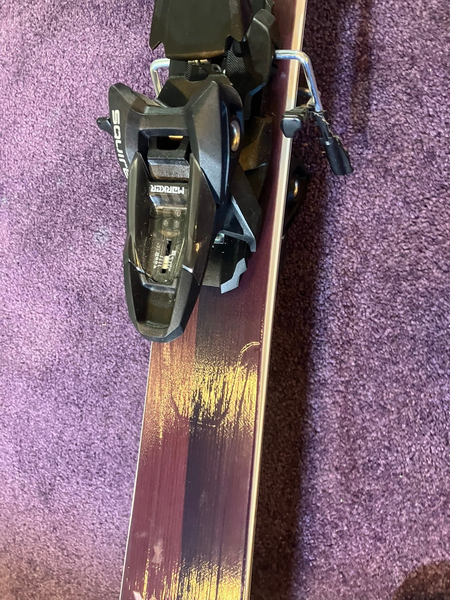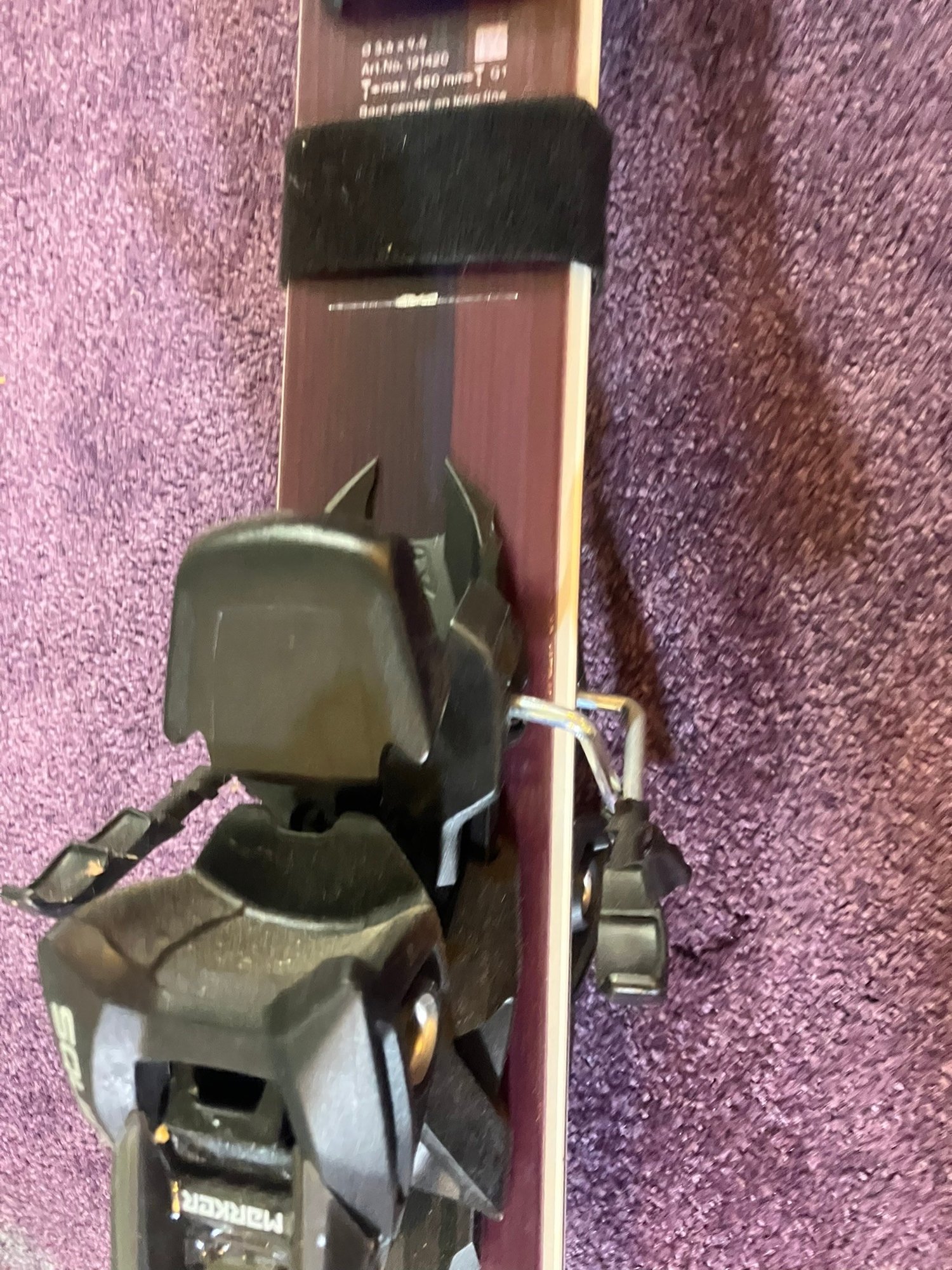 Volkl Women's Yumi 80 Skis 154cm long, with installed marker bindings, near-mint condition. These have almost zero usage on them--unfortunately my wife had the bindings cranked up way too high and she fell during her first 100 feet of skiing for the year and injured herself, and they haven't been used since then. These skis literally have less use on them than a pair of skis that have been demo'ed for one run. Anyway. Make sure you adjust the bindings to match your skill level and body type before using them!