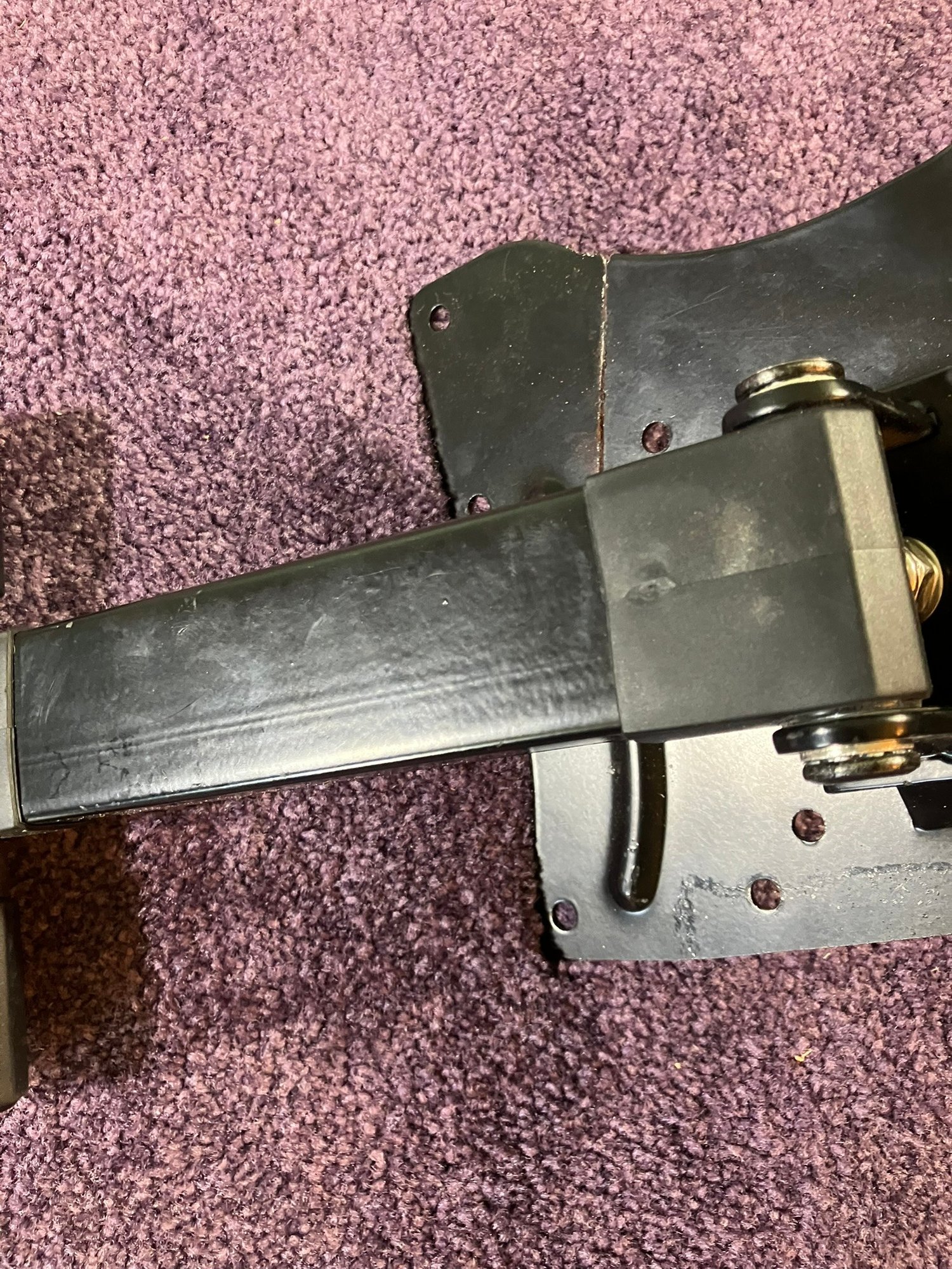 Wall mount metal monitor arm. Max extension from the wall is 16". Heavy duty. This one has been cut into, but the cut didn't get finished and I don't think the cut weakens the unit in any way. Check pics for clarification.