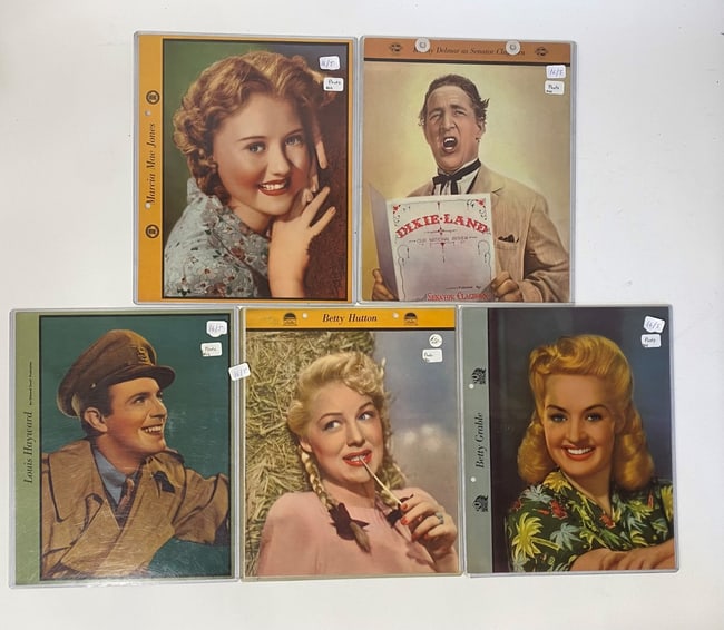 Each with extensive information re: the artist and their movies at the backside. By various production companies. Marcia Mae Jones; Kenny Delmar as Senator Cleghorne; Louis Hayward (no info at reverse) Betty Hutton and Betty Grable All 8 x 10