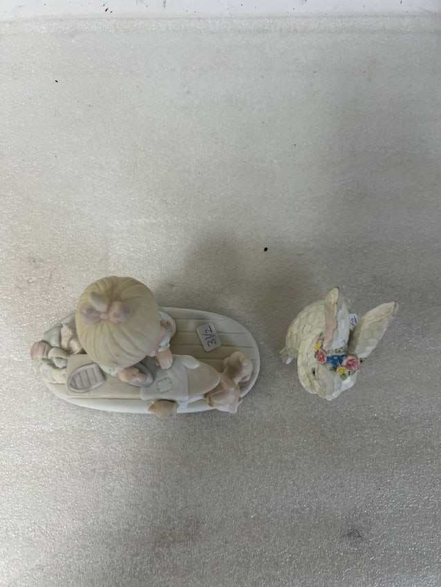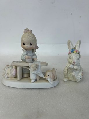 The second is a rabbit. 6"H and rabbit is 4 1/2:H Two in the lot.