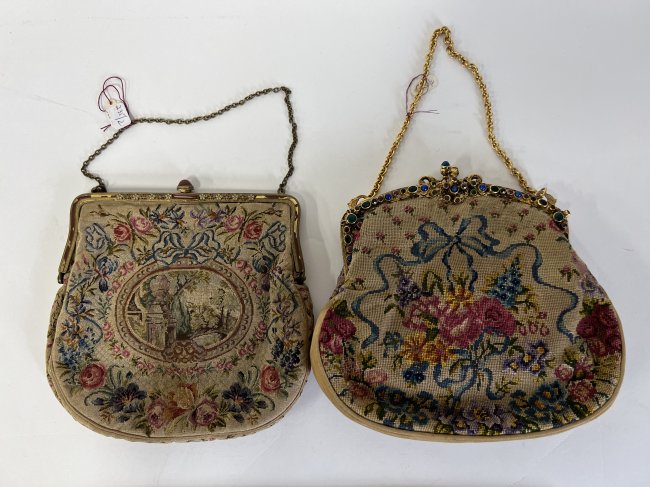 One decorated with roses and ribbons and with a fancy bejeweled closure with lapis, carnelian, amethysts and green stones and the second with a classical garden scene front and back and a carnelian clasp and carnelian embellished closure. (the latter with some carnelian loss around frame. Two in the lot