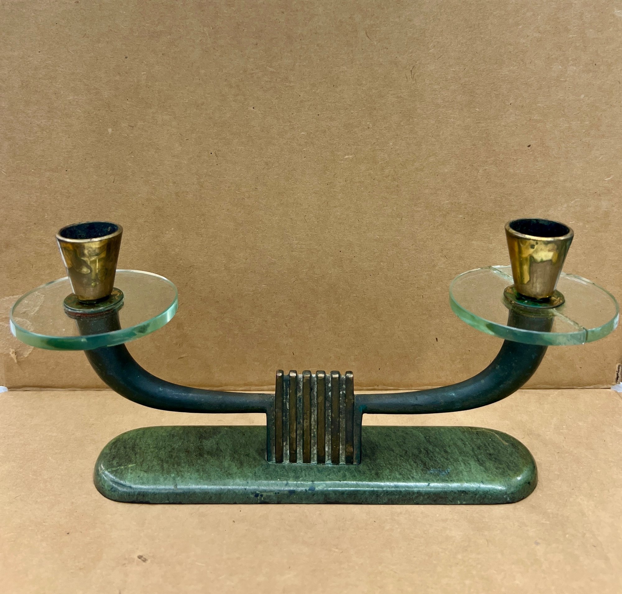One of the glass pieces has been glued together. Marked "PAL-BELL CO Made in Israel" at the underside. 4.5"H 9.75"W.