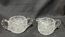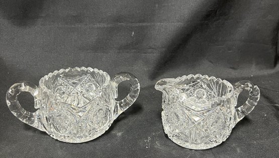 Hand cut, crystal clear, both are 3 1/8"H