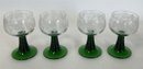 Green art glass bases, etched tops. 5 1/2"H