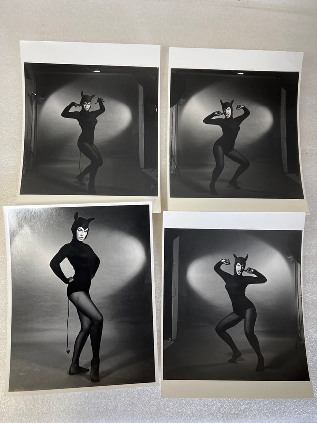 Signed Bunny Yaeger in script on the reverse and with Bunny Yeager stamp and copyright stamp. Four in the lot. 8: x 10"