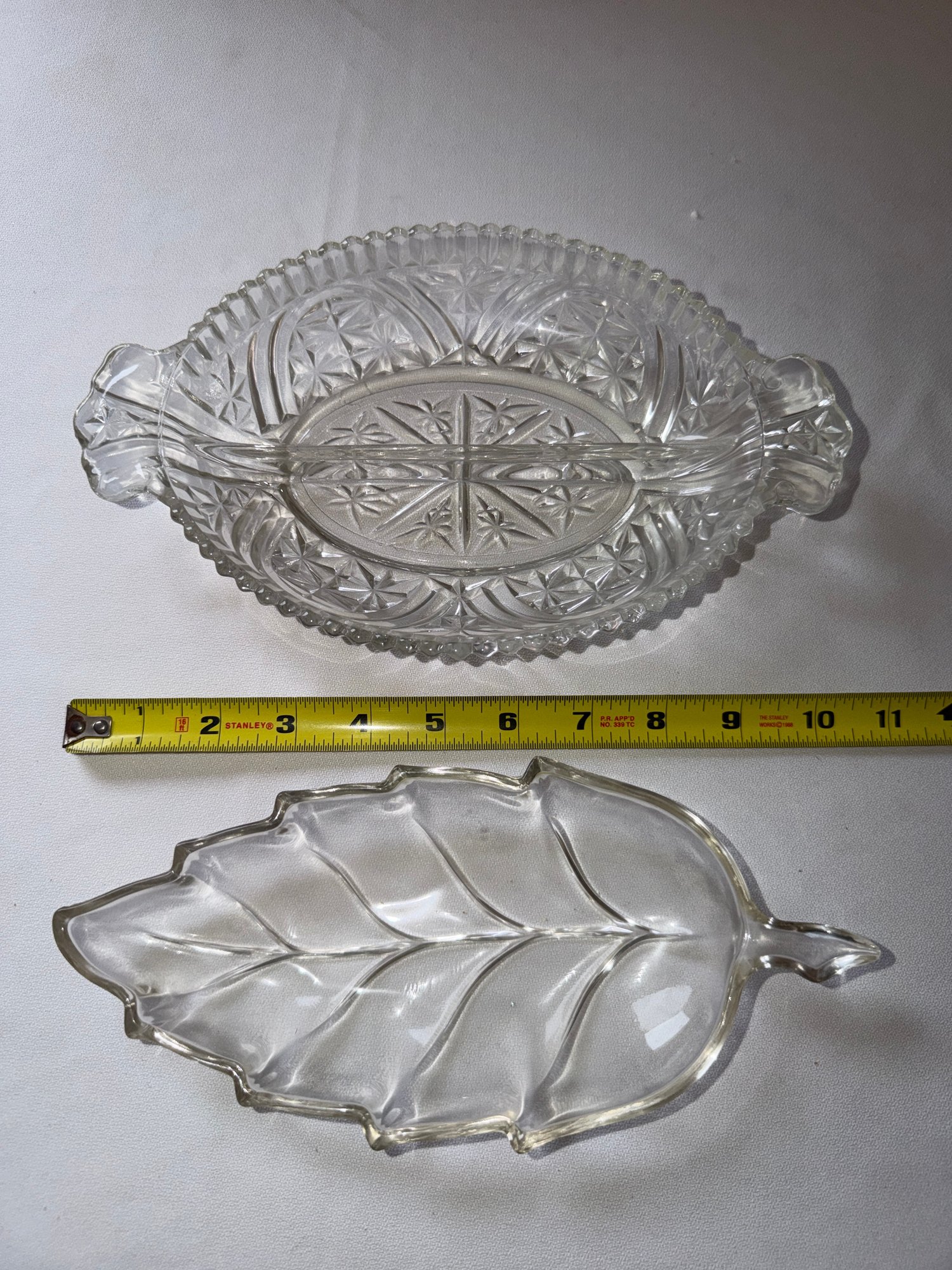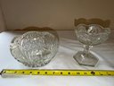 Assorted Crystal Serving dishes, Pitchers, and Leaf Print candy bowl. Good condition see photos! Local pickup or courier shipping available – please see shipping terms for details.