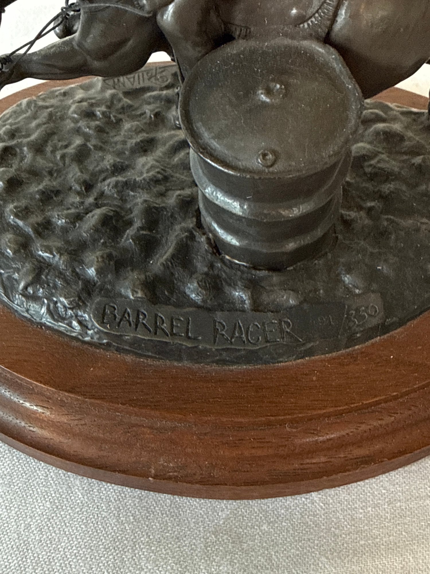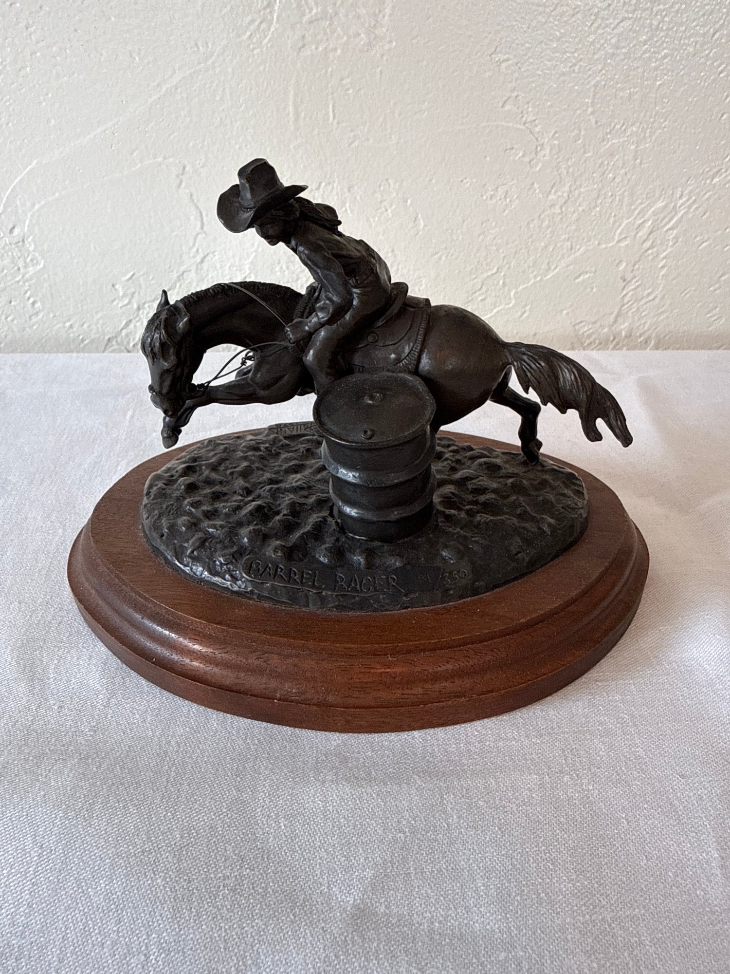 This item is a Don Polland Bronze sculpture 91/350, “Barrel Racer”. Local pickup or courier shipping available – please see shipping terms for details.